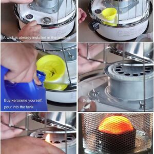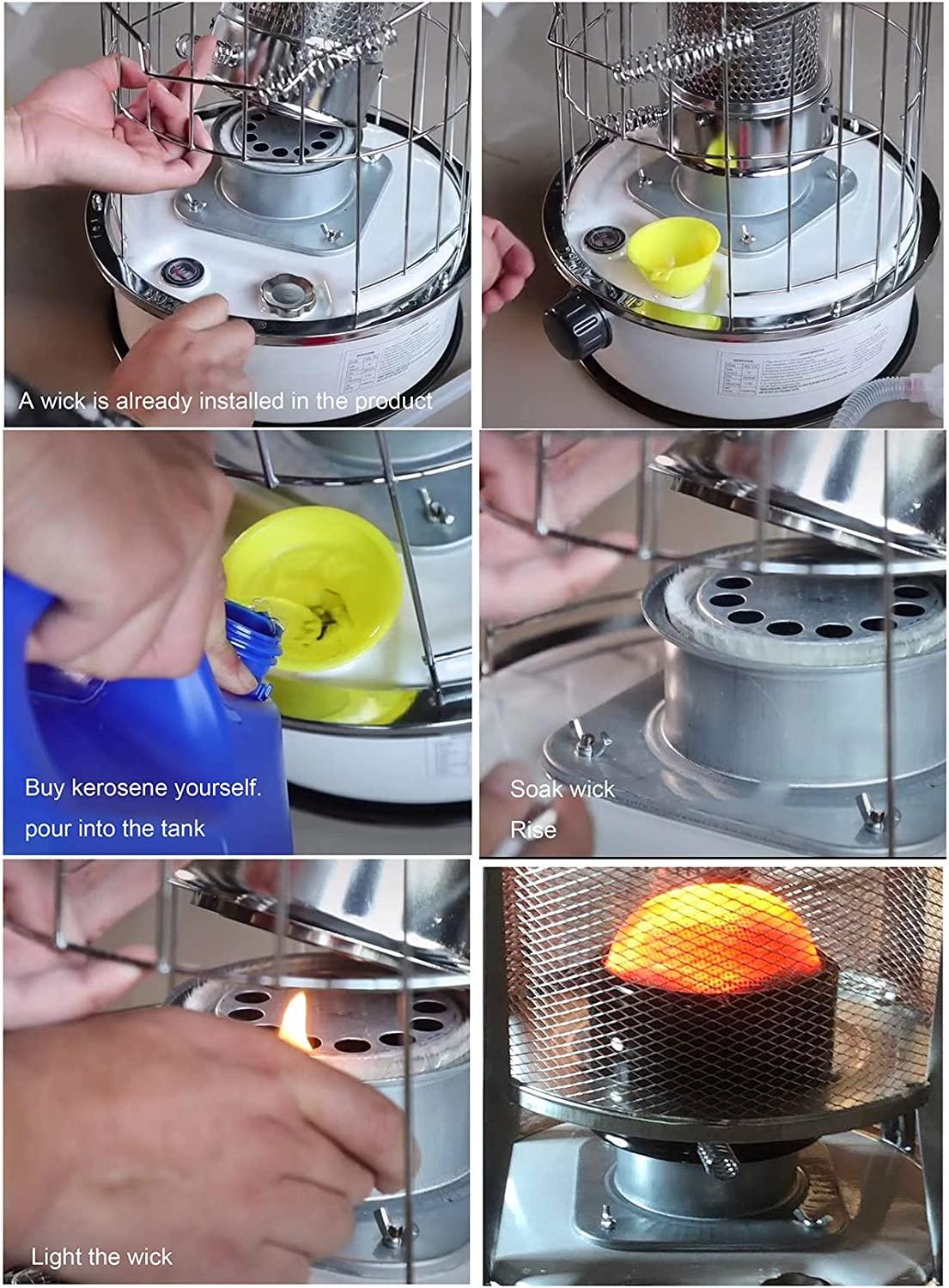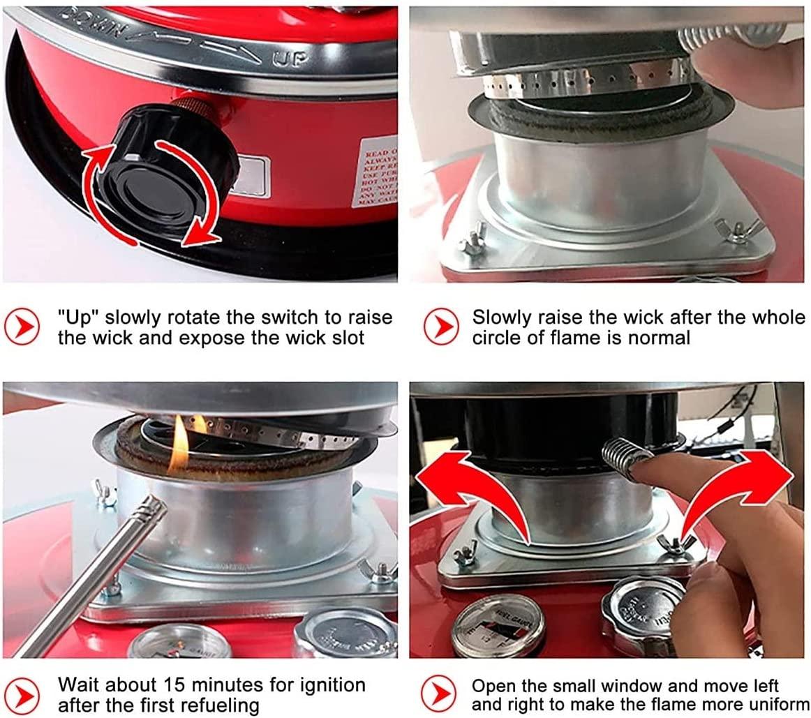- ☛ Applicable scenarios: Multifunctional kerosene stove kerosene heater is very suitable for emergency use or daily use, can be used for indoor and outdoor heating, outdoor without electricity camping, camping ice fishing, mobile heating; it can boil water, cook, barbecue, etc.; it is an outdoor sports hobby must-have items.
