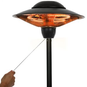 - [Easy to Assemble and Use]- This outdoor heater is very easy to assemble, only partial assembling is needed. Using this electric outdoor heater is also simple and easy. The heater is controlled by a rope/ line to switch on/off and adjust the heat power, which is very convenient to operate.