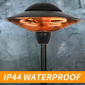 - [High quality & Waterproof]- This patio heater is made of high-quality metal and passed ETL certification. IP34 rated provides water and dusty resistance. It is an ideal electric outdoor heater for courtyard, balcony, garage, garden, BBQ, outdoor cafe and restaurant. This infrared heater can be used not only outdoor, but also indoor, it can resist the cold and bring you warmth.