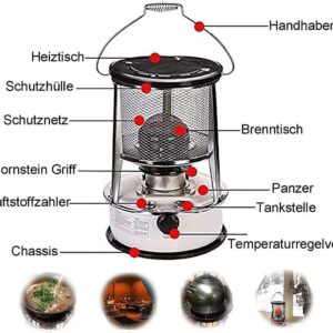 - ☛ Applicable scenarios: Multifunctional kerosene stove kerosene heater is very suitable for emergency use or daily use, can be used for indoor and outdoor heating, outdoor without electricity camping, camping ice fishing, mobile heating; it can boil water, cook, barbecue, etc.; it is an outdoor sports hobby must-have items.