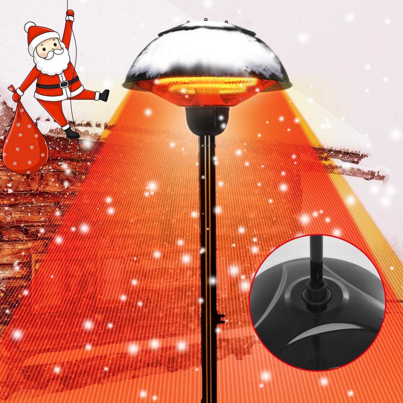 This electric patio heater is made of premium steel which is weather resistant and dustproof for outdoor use, glossy finish, smooth tou/ch, design with a stable round base to avoid tipping.