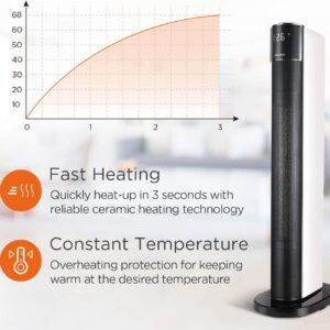 - Fast Heating & Constant Temperature: Ceramic heaters are, typically, the most effective type of electric-resistance radiant heaters. Quick heat-up to 70°F in 3 second with reliable ceramic heater technology, offering steady comfortable temperature