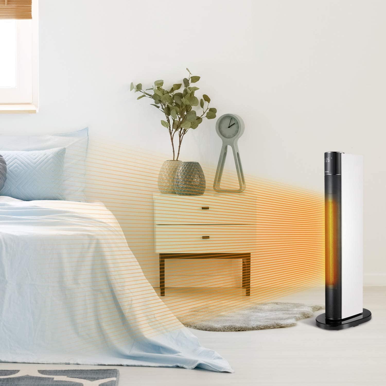 - Programmable Thermostats Heater: Tower heater, with 3 heating options (High, Low, ECO mode) to achieve customized temperature settings with maximized efficiency and warmth. ECO setting automatically helps energy-saving based on your ambient temperature