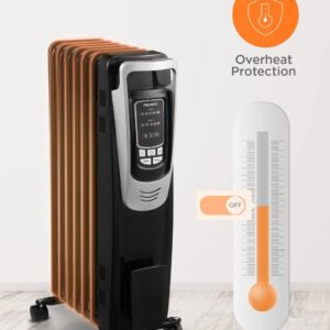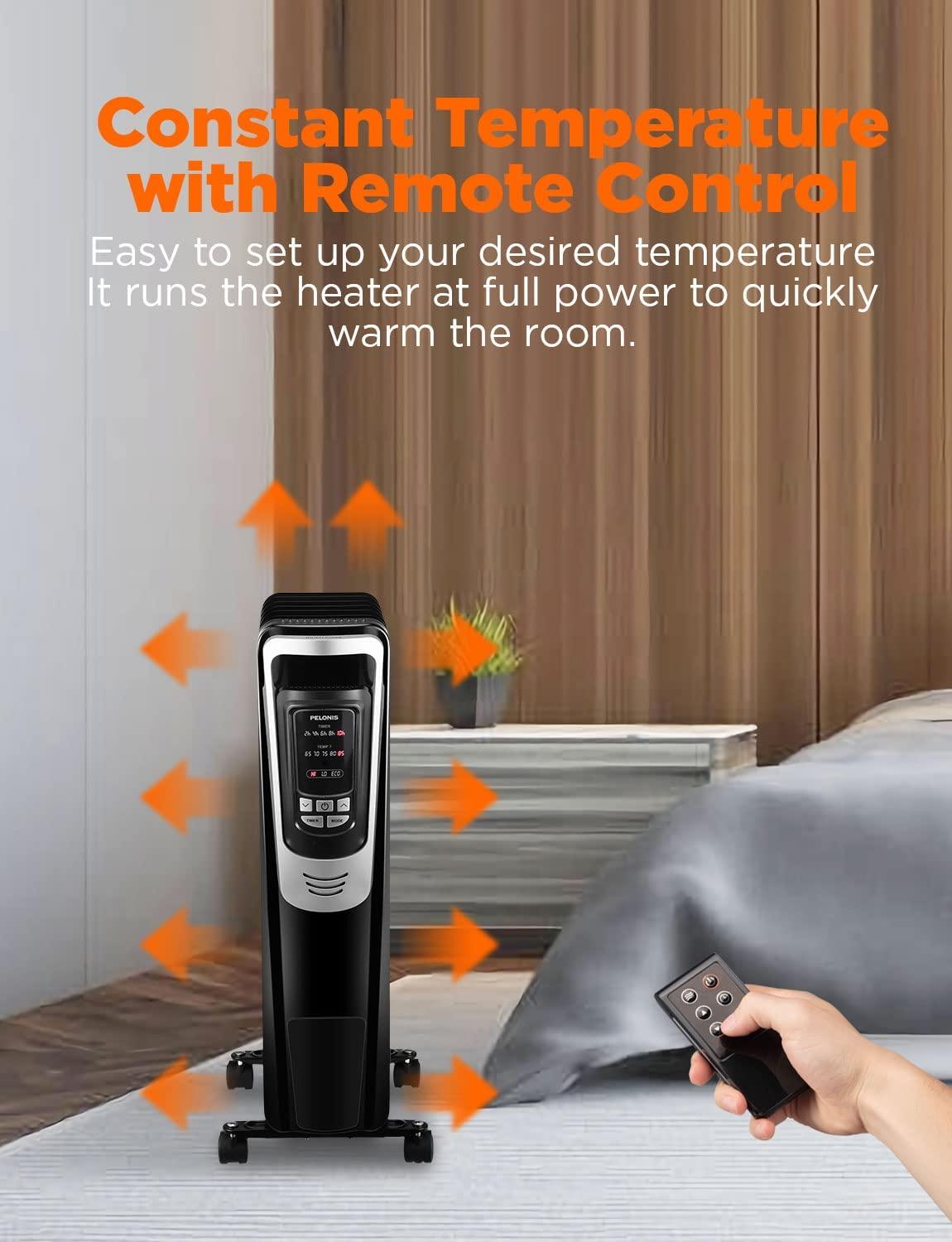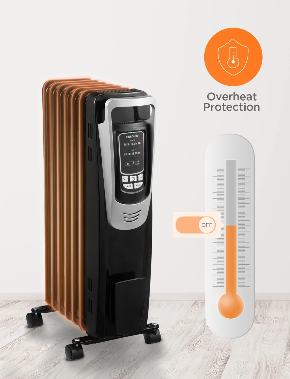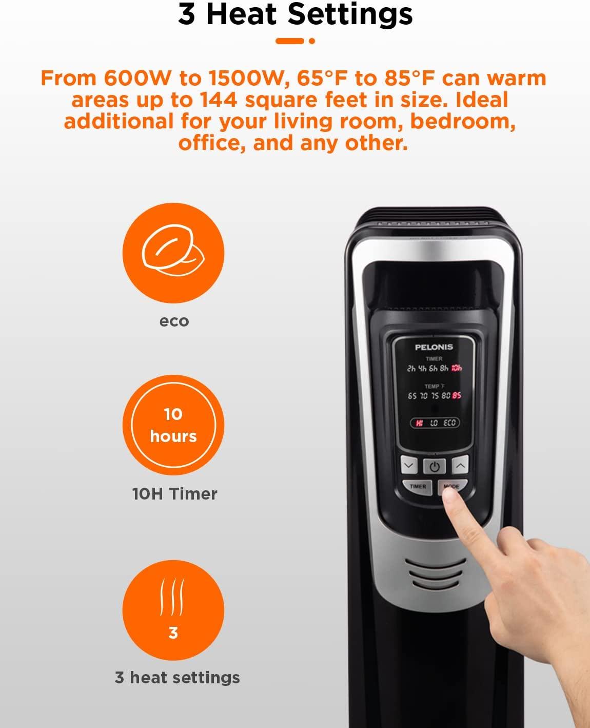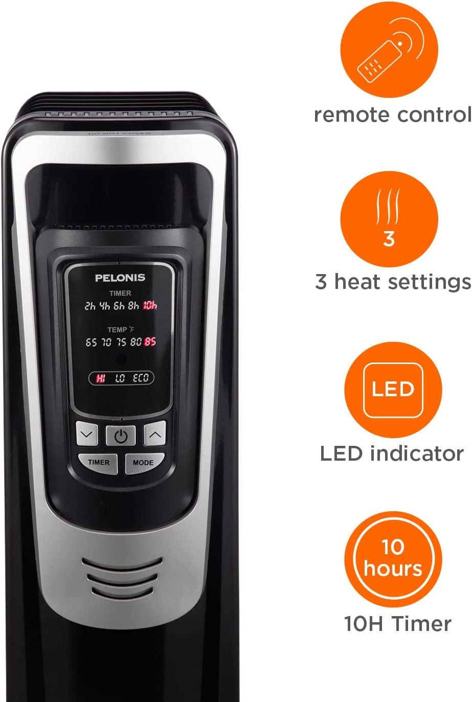PELONIS Electric 1500W Oil Filled Radiator Heater with Safety Protection, LED Display, 3 Heat Settings and Five Temperature settings. Perfect for for Home or Office