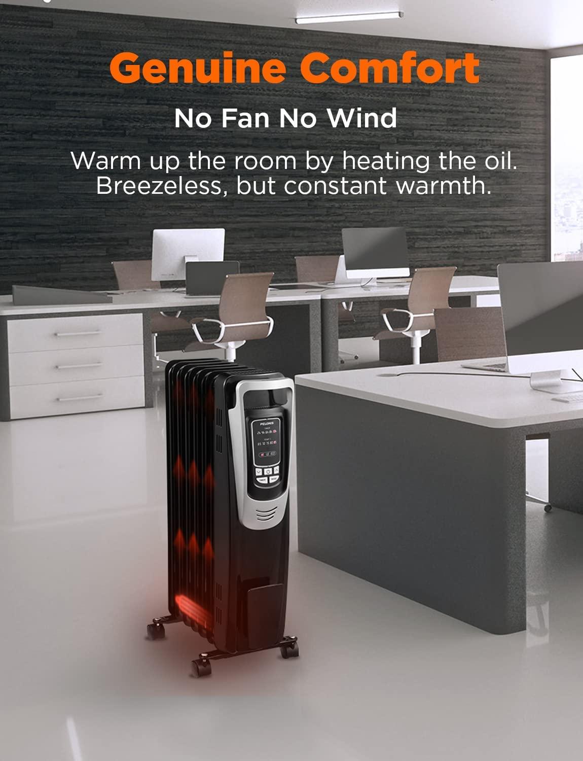 - [Quiet Operation] Enjoy peace and quiet room while keeping your space warm and cozy without annoying heater sounds that disturbs you from sleep, work, meditation, chat or anything requires peaceful .it offers warmth more gentle and lasting but usually takes more time than fan heaters because its heat-conducting medium is oil.