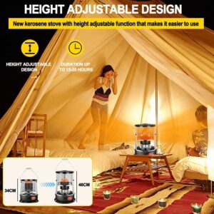 - Specially Designed Kerosene Heater: The scientific size enamel heating table can achieve heat dissipation and boiling water at the same time. The protective cover can be stretched in the range of 34-46cm, and the height can be controlled ly;No noise and glare, it is convenient to use every night.