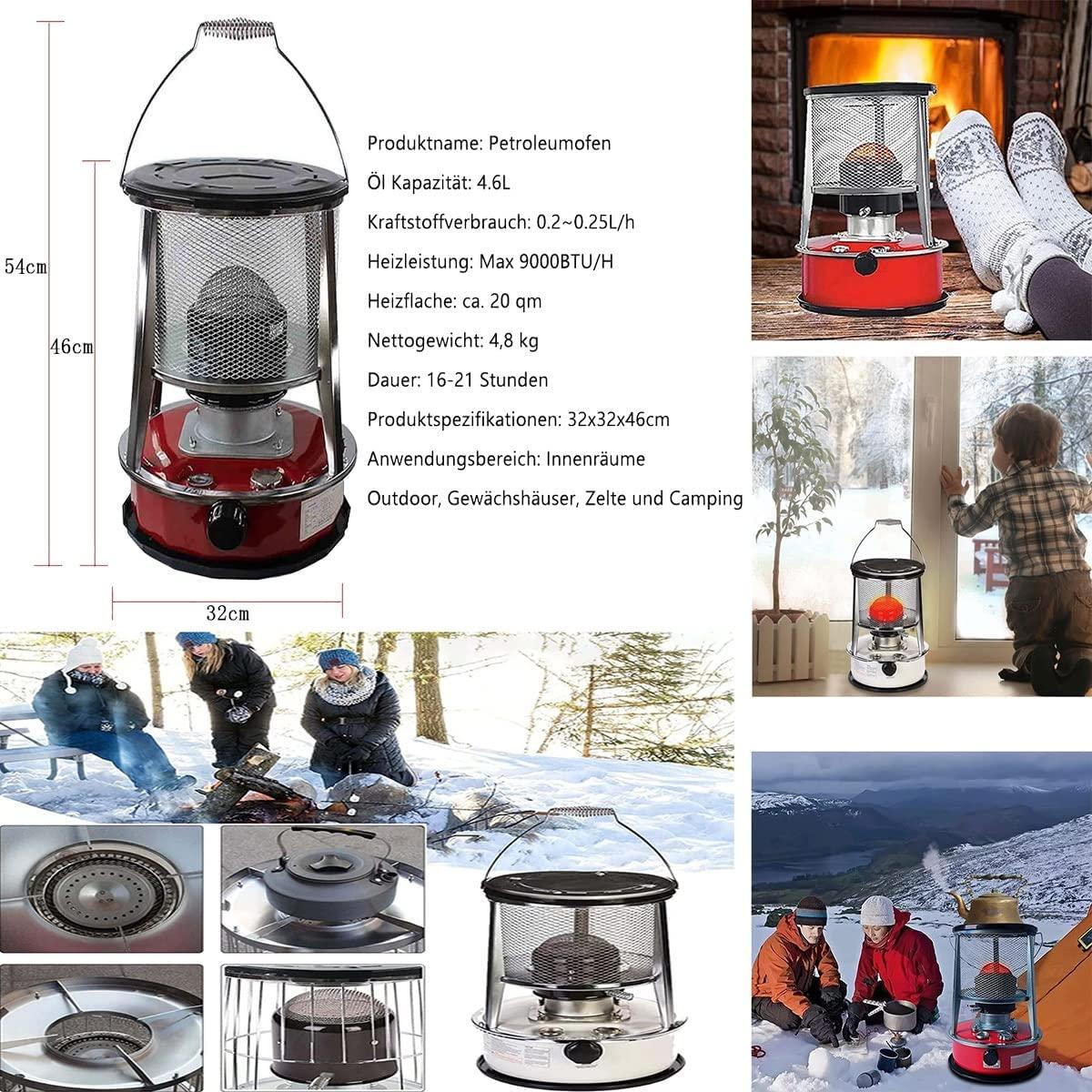 - ❦Heating function: The maximum calorific value of the kerosene stove is 9000 BTU/H, the calorific value is high, and the heating area is large. The heating area can cover a space of 20 square meters.