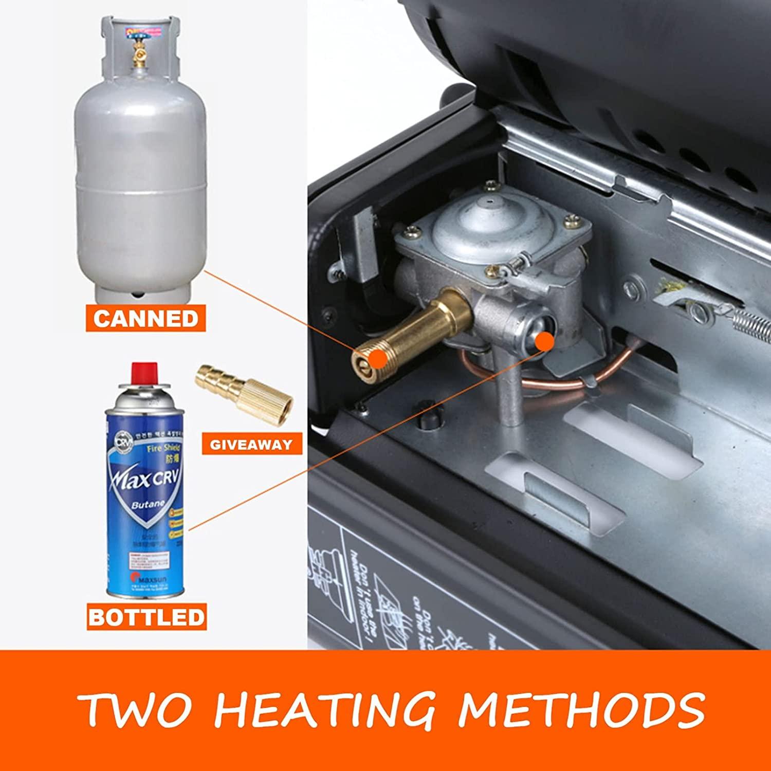 - ♥【Small and portable】Small size, light weight, easy to carry, can be easily carried and moved. No power required, standard butane tank or liquefied petroleum gas can be used to provide heat anytime and anywhere