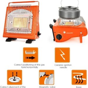 Portable Camping Gas Heater Outdoor,Camping Heating Cooking Stove,Multifunctional Gas Heater Space Heater,2 in 1 Gas Heater and Gas Stove with Portable Handle,for Caravan Camping Fishing