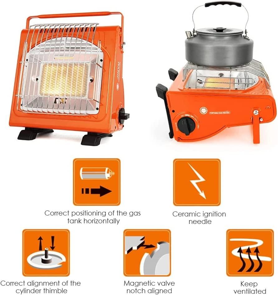 - Dual-Purpose Tent Heater : Portable Dual-purpose Tent Heater can be used as a heater for heating in the room, and it can also be used for cooking during camping, very practical and convenient.
