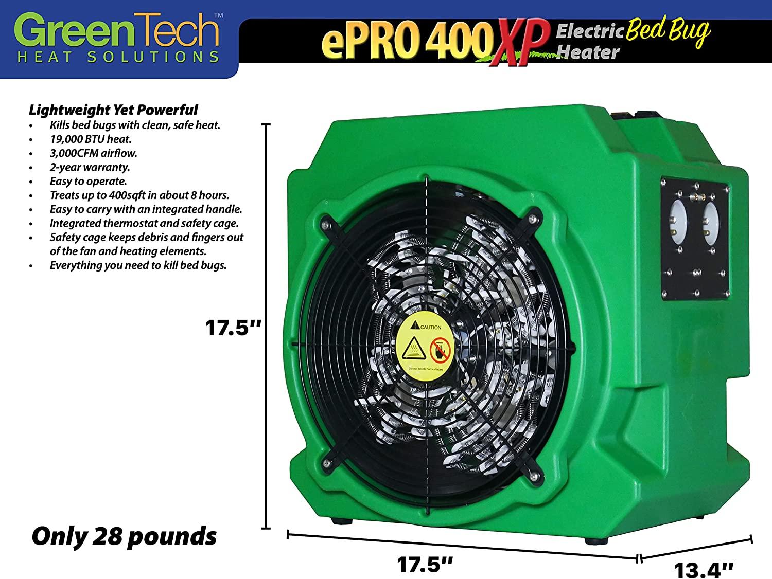 Portable Electric Bed Bug Sanitation Heater | Professional-Grade | Heat Treatment System and Equipment | Get Rid of Bugs | 19,000 BTU | 3000 CFM | ePRO 400 XP good for 400-600 sq foot room | Green