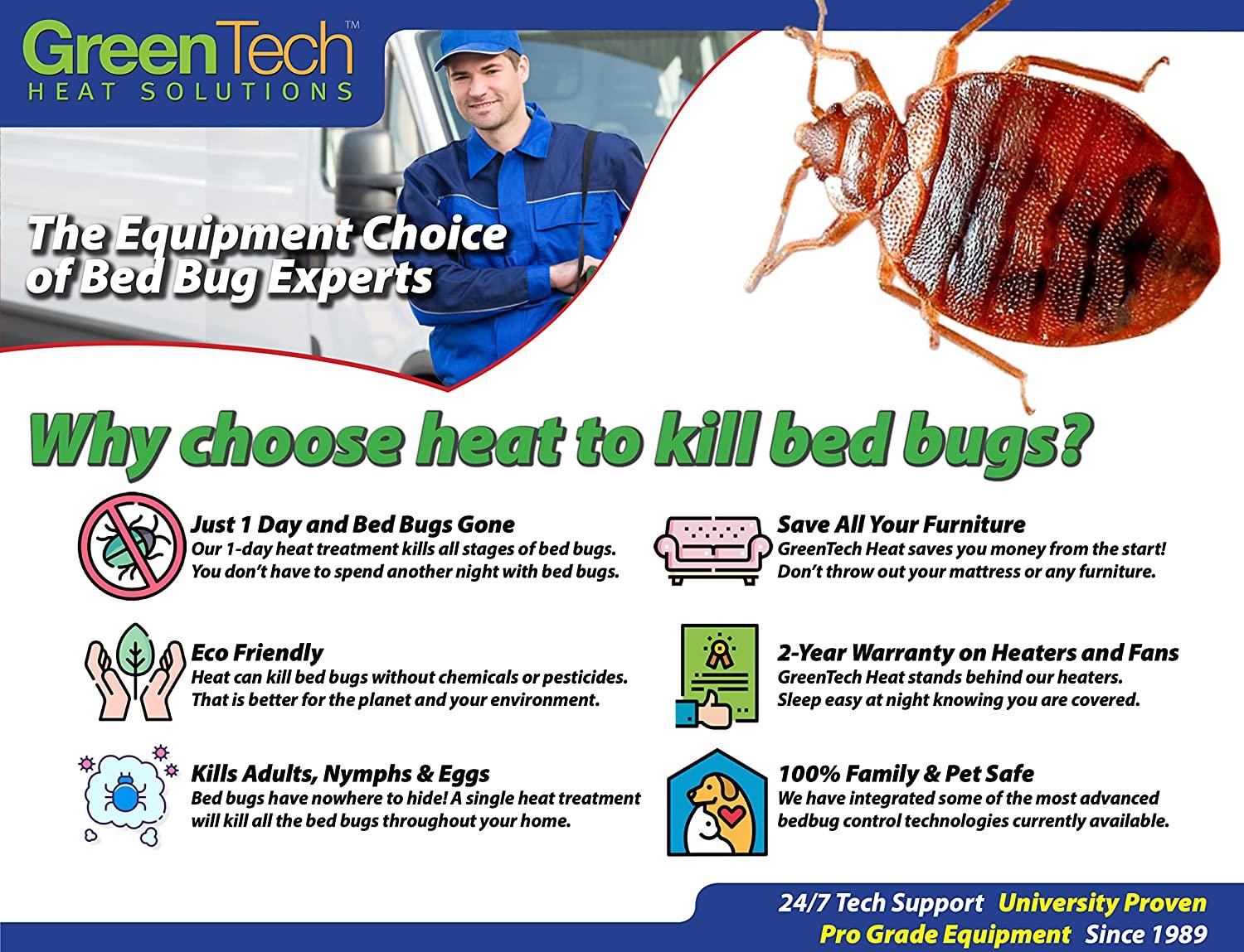 - Heat treat a room to be insect- in just 1 day. When properly applied, our professional-grade equipment consistently provides a 100% kill, 100% of the time, every time. Great choice for electric bed bug heat treatments for hotel rooms, small apartments, dorm rooms, and other similarly-sized, closed system projects.