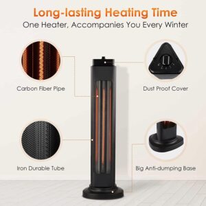 - 3s Instant Heat & 4 Adjustable Modes; Equipped with a carbon fiber heating tube and under the rated power of 1500W, the space heaters for indoor use can heat up in 3 seconds a relatively small space like a bedroom; The patio heater comes with 4 adjustable heat setting modes to your different needs: 750W, 750W+Oscillation, 1500W, 750W+Oscillation; You can simply spin the switch to get the mode you want