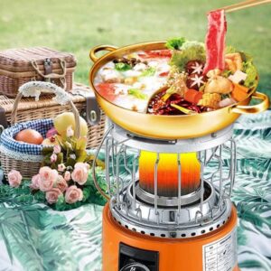 - 2 in 1Multifunctional Outdoor Heating Stove : This 2-in-1 portable heater has a multifunctional design, You can select “heating only” mode and “cooking heating” mode by toggling the wire. One device to meet your heating and cooking needs.