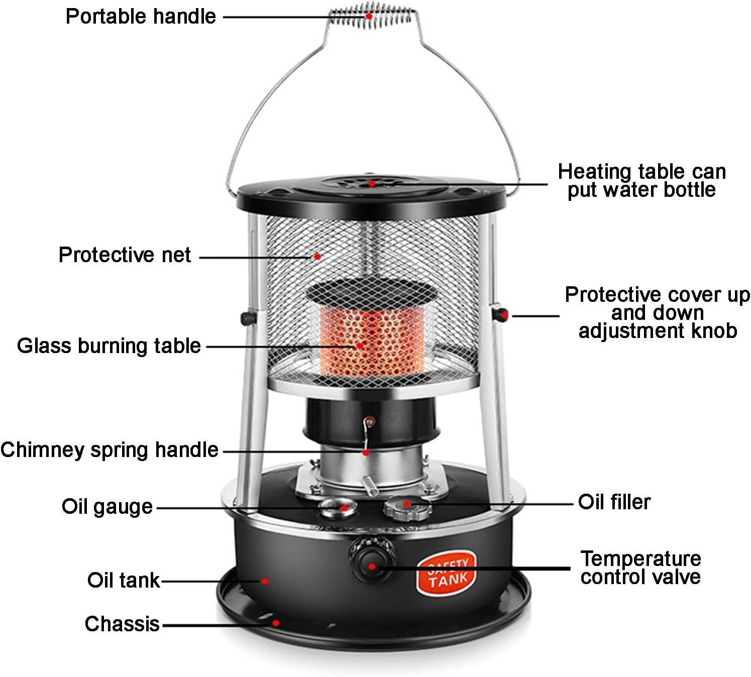 - 【Multiple Uses】: The kerosene stove has an iron frame on the top, which can be used as a grill, stove, and hot pot when heating. Can be used for heating, boiling water, cooking and grilling. Kerosene stoves extend outdoor time and can be used both indoors and outdoors.