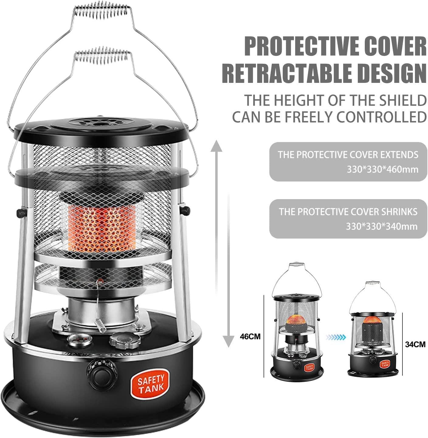Portable Kerosene Heater Stove, 9000 BTU/H Indoor Kerosene Heater Height Adjustable Oil Heaters for Home Indoor Outdoor Camping Deck (Color : Black(A))