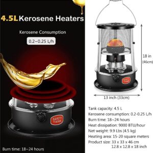 Portable Kerosene Heater Stove, Indoor Kerosene Heater with 4 Wicks, Adjustable Height 34-46cm, Camping Kerosene Diesel Heaters for Indoor Outdoor, Patio, Deck, Home, 4.5L