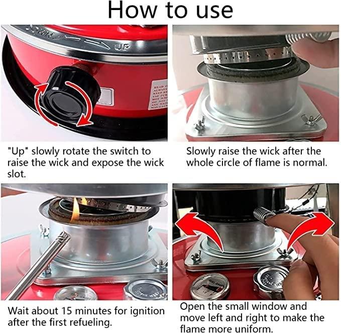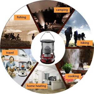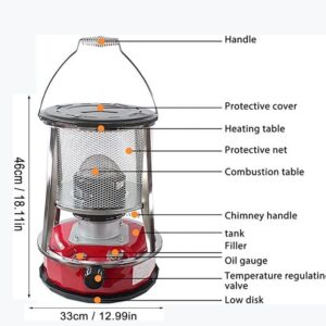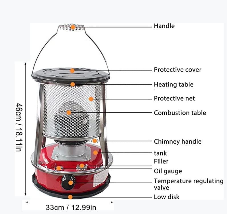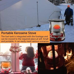 - ❄MULTI-PURPOSE: The fuel gauge can check the fuel condition in real time, and the sealed fuel filler cap is safer. The combustion temperature of the kerosene stove can be adjusted ly, the portable handle is designed for easy ignition, equipped with a safety net, and the top heating table is designed to heat, boil and cook at the same time.