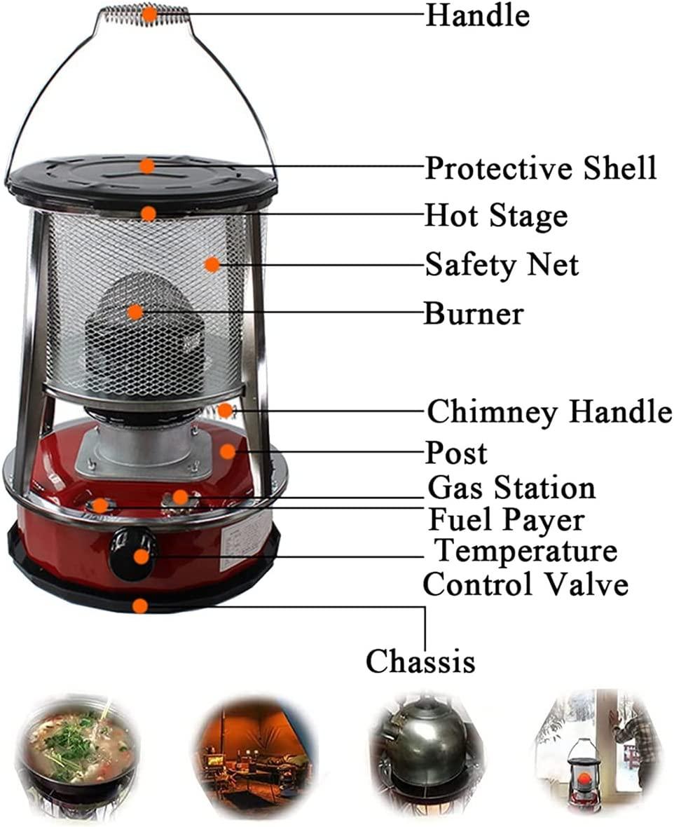 - ❦Adjustment knob: kerosene heater has a rotary regulating valve, which can regulate the firepower according to your needs; no noise and glare, easy to use every night.