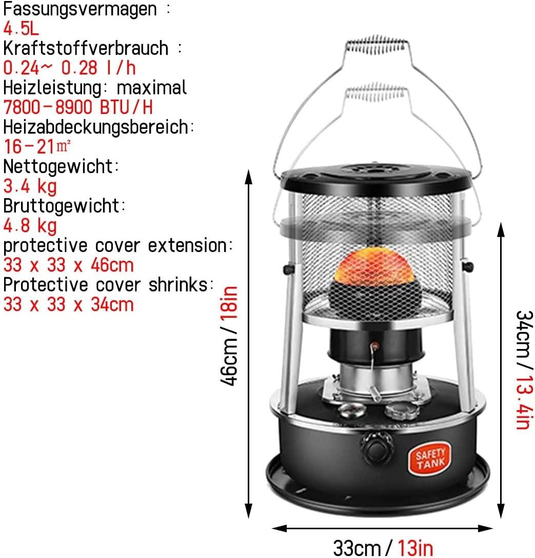Portable Kerosene Stove Heater Efficient Stainless Steel Oil Heaters Burner Outdoor Tent Heater Camping Stove for Home Indoor Outdoor Patio Deck Garage Space Emergency Survival 4.5L Retractable Guard