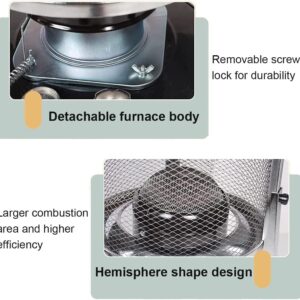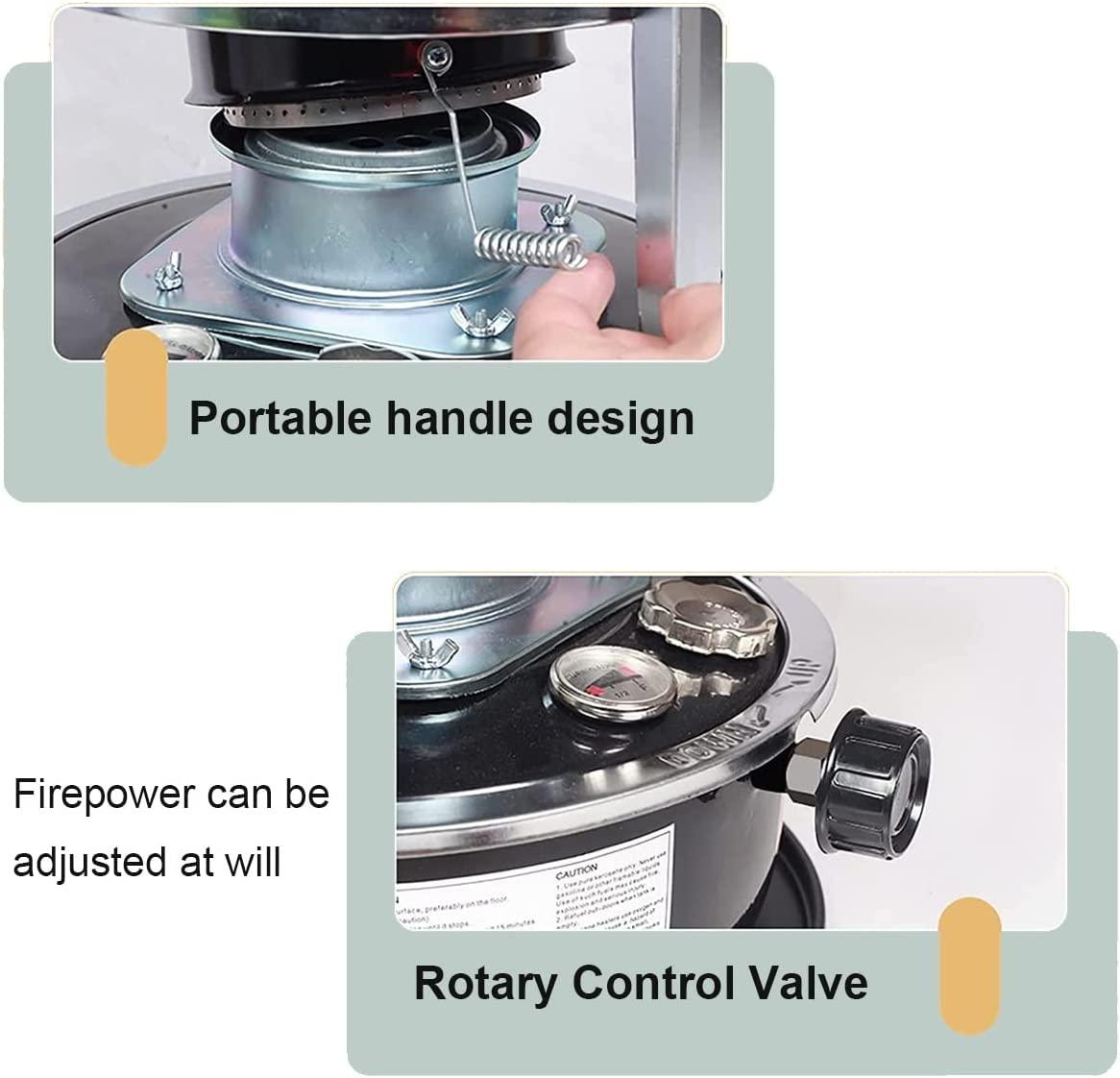 - ◆ Adjustment knob: The oil heater has a rotary valve, which can adjust the fire power according to your needs; no noise, no glare, and easy to use every night. The heating station on top can be used as a work station for food preparation.
