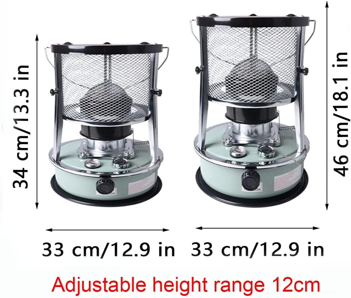 - ◆ Energy saving and safety: Portable kerosene heater, no electricity required. Don’t worry about power outages caused by hurricanes, heavy rain, and heavy snow, and use it at any time. The kerosene heater is quiet, no odor, no oil leakage, durable