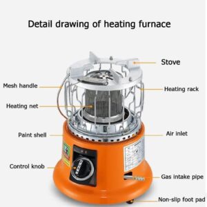 - Multifunctional Gas Heater : Equipped with a stainless steel protective cover to prevent burns. Equipped with stainless steel handle, easy to carry and move. Suitable for outdoor travel/camping/picnic/fishing/yard party/beer garden/tent party/terrace/garage etc.