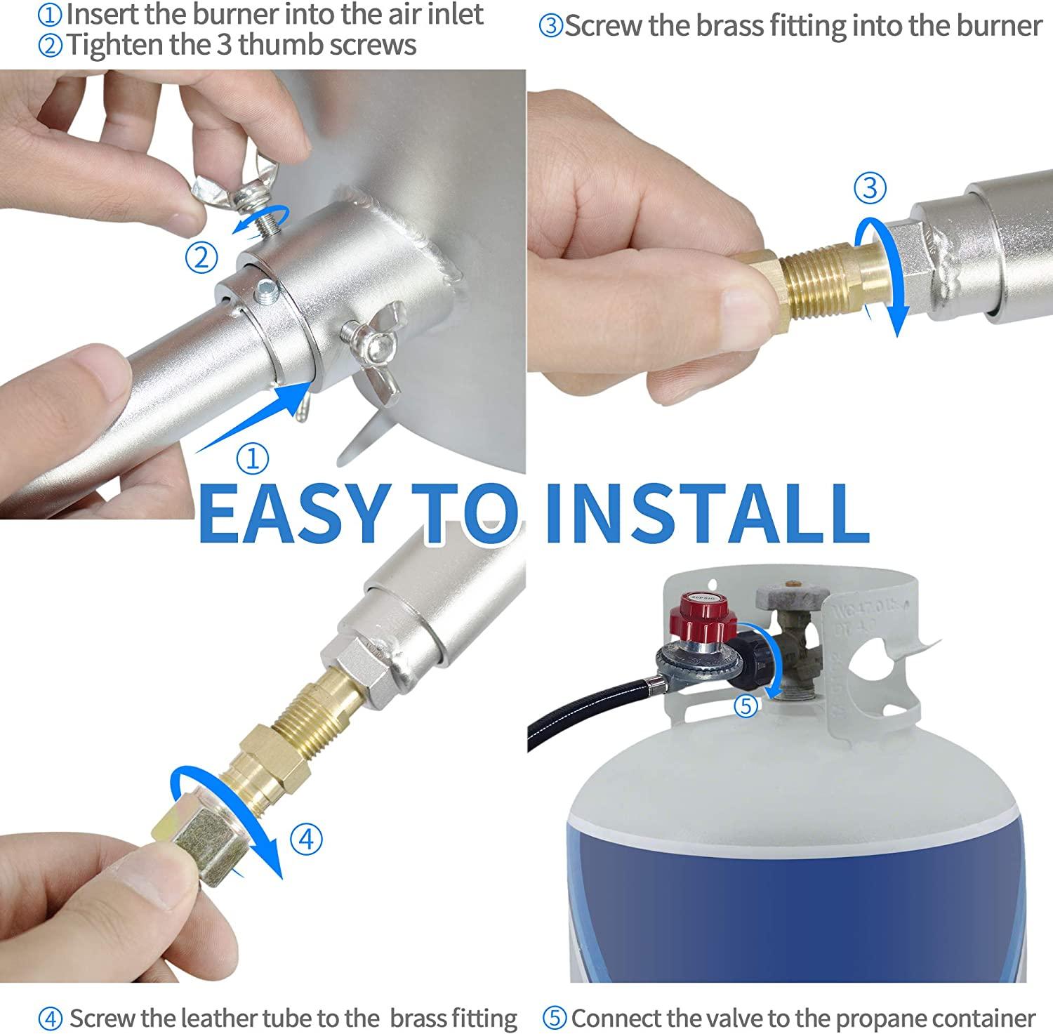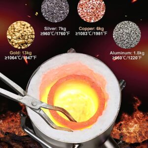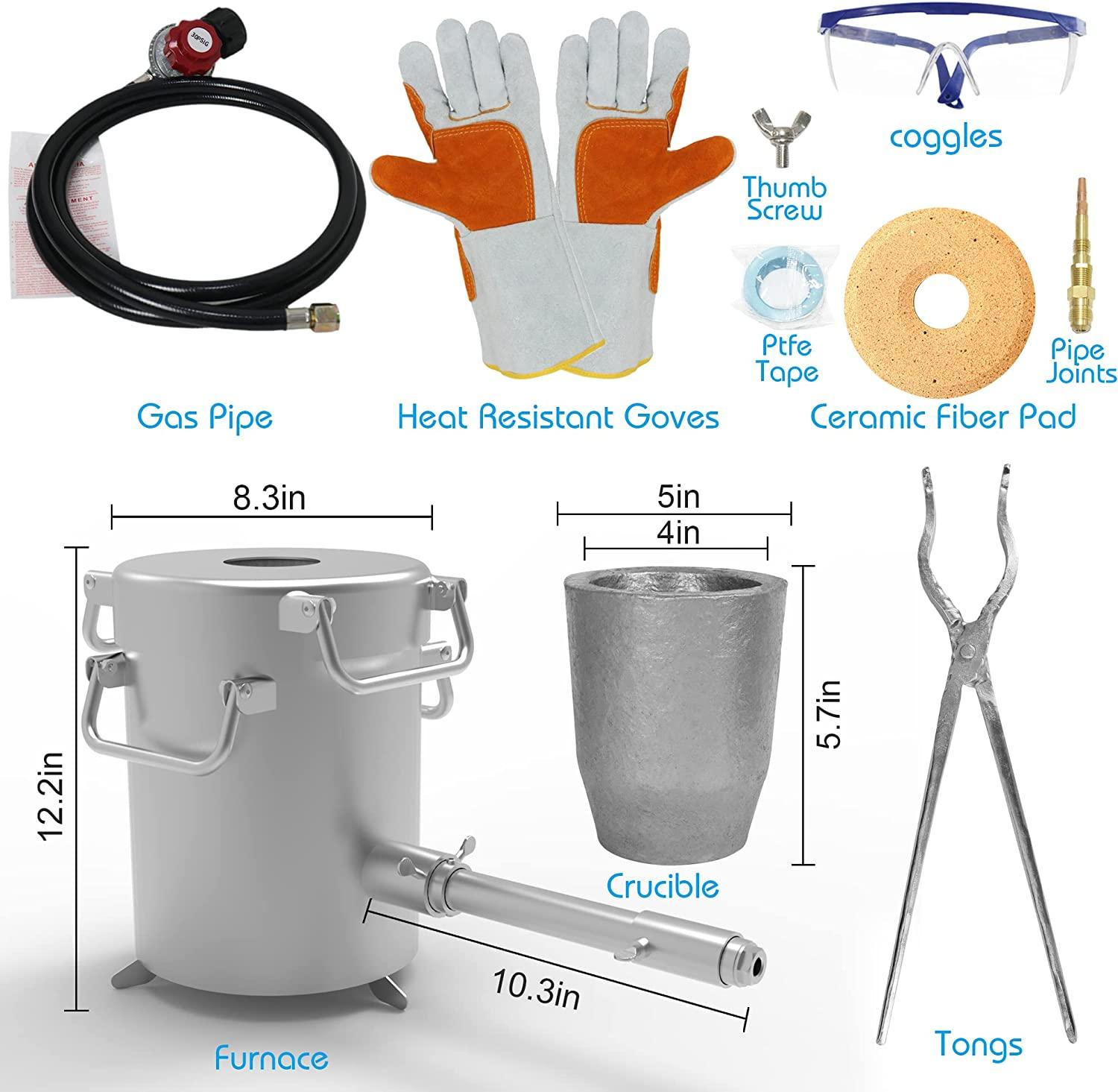 Full package: Our propane furnace is equipped with a series of required accessories: furnace*1, crucible*1, tongs*1, ceramic fire plate*1 (only for crucible heated by heat insulation, not in furnace), air intake duct*1, regulating valve*1, PTFE tape *1, instruction manual*1, heat-resistant gloves*1, goggles*1. Bring safety and convenience to your use.
