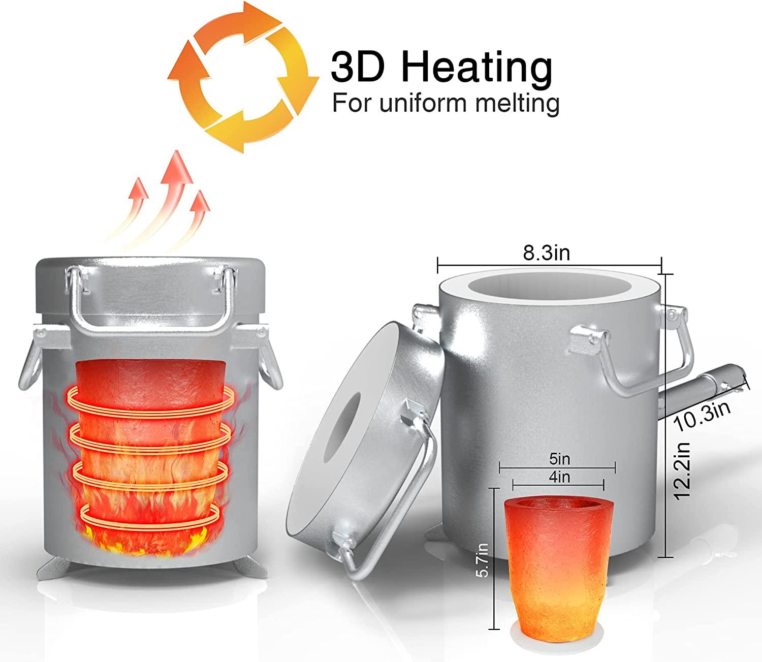 Suitable capacity: after several calculations of graphite crucible capacity and the most commonly used volume of furnace, we decided to adopt the most efficient 6kg large volume. It can melt 13kg gold, 7kg silver, 6kg copper, 5kg iron and 1.8kg aluminum.