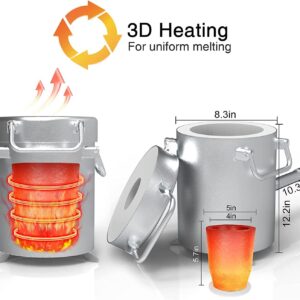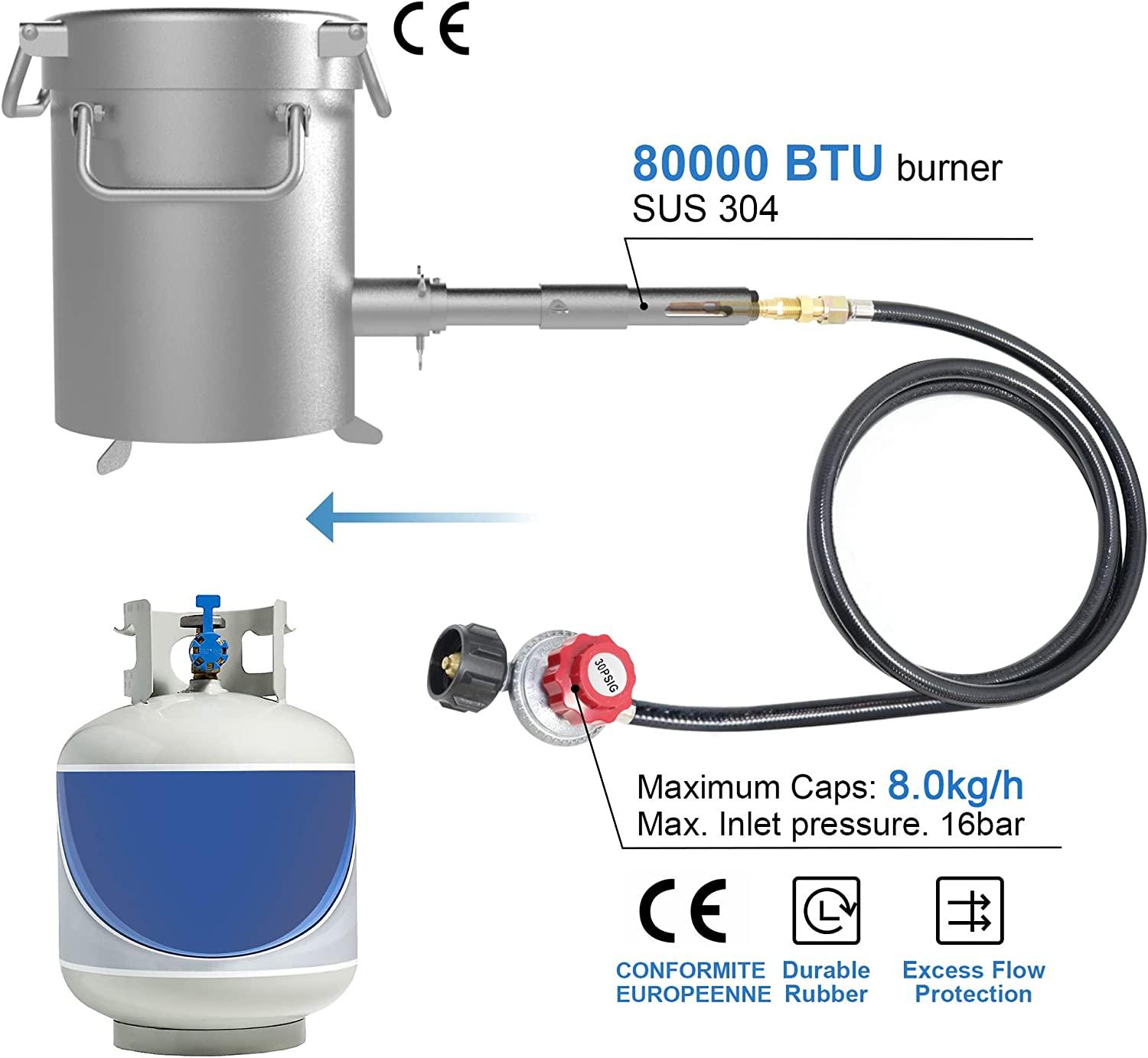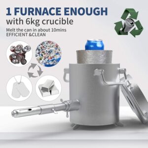 Propane Melting Furnace Kits, 6kg(13LB) Graphite Crucible, Up to 2372℉, Made of Stainless Steel Barrel, Smelt Metal,with Goggles and High Temperature Gloves