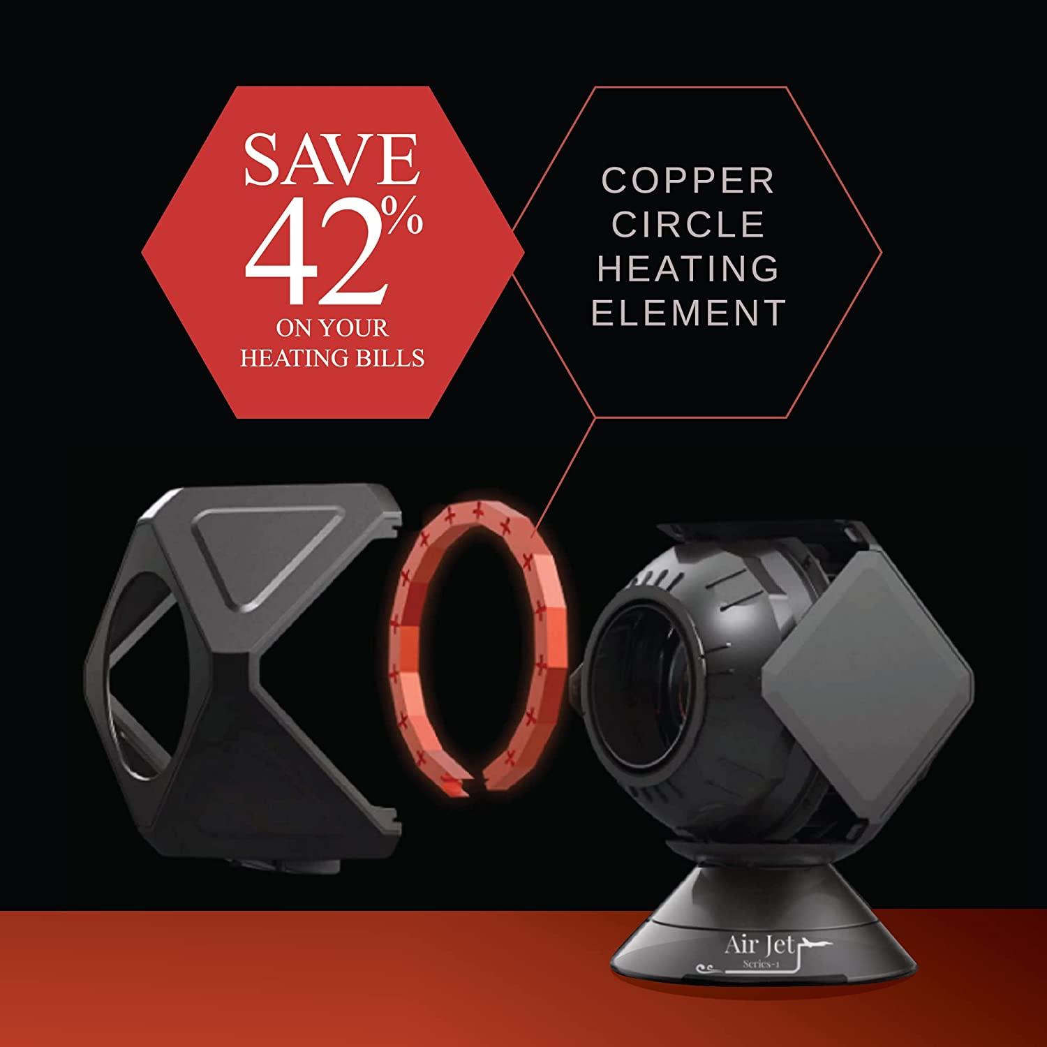 - SAVES 42% on Heating Bills – Our infrared technology uses the same concept as the sun. It releases radiant heat minimizing heat losses. Resulting in primarily heating humans and objects, not the air. Most heaters heat the air – it’s a waste of energy and money. The Air Jet Series-1 uses up to 40% less energy. Since it doesn’t impact the air by swirling up dust or impacting the humidity. It leaves you clean, comfortable & healthy.