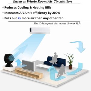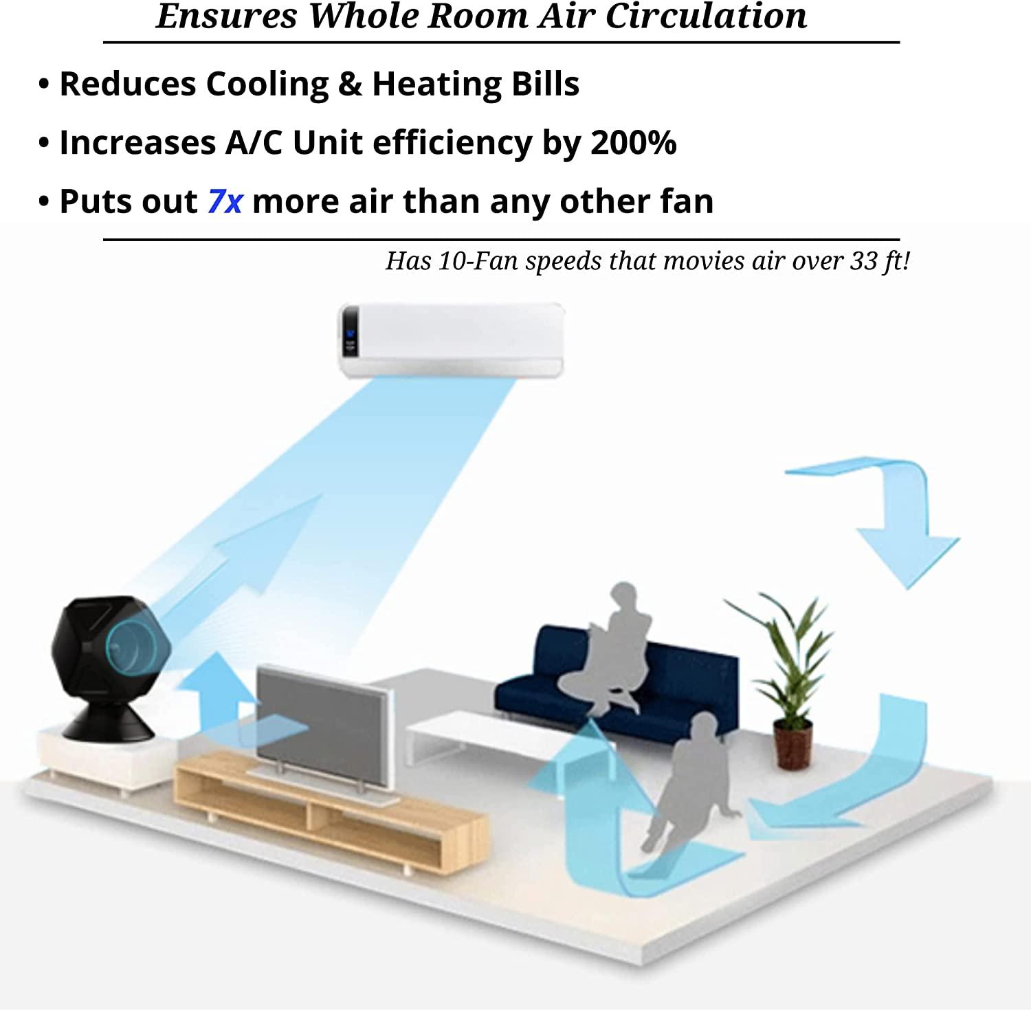 - MULTIPLIES AIR 120X- to move air a true 33 ft. It does this with its 120v Brushless DC Motor. As you’d find in a luxury car for its heating and cooling system. This gives you a reliable & efficient motor to that will save you big on bills.