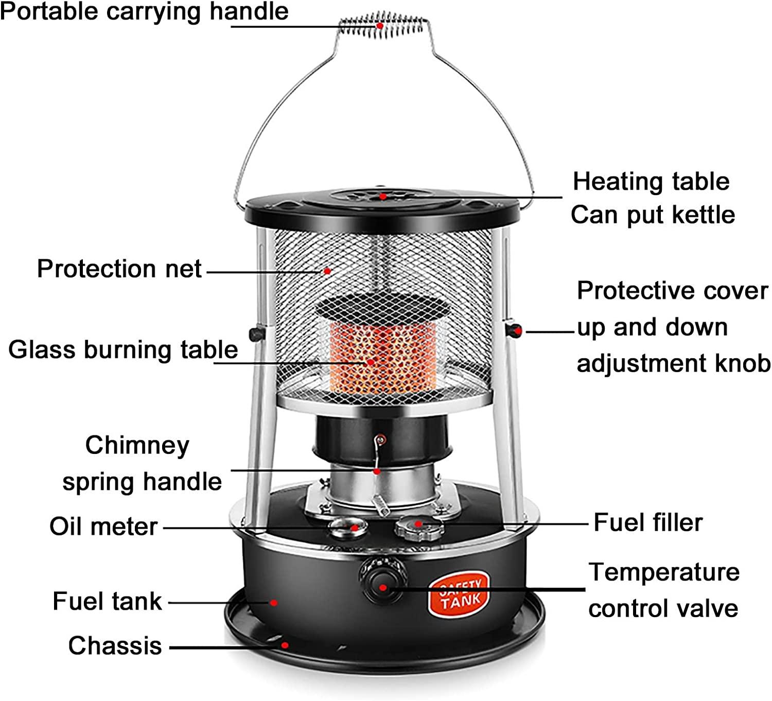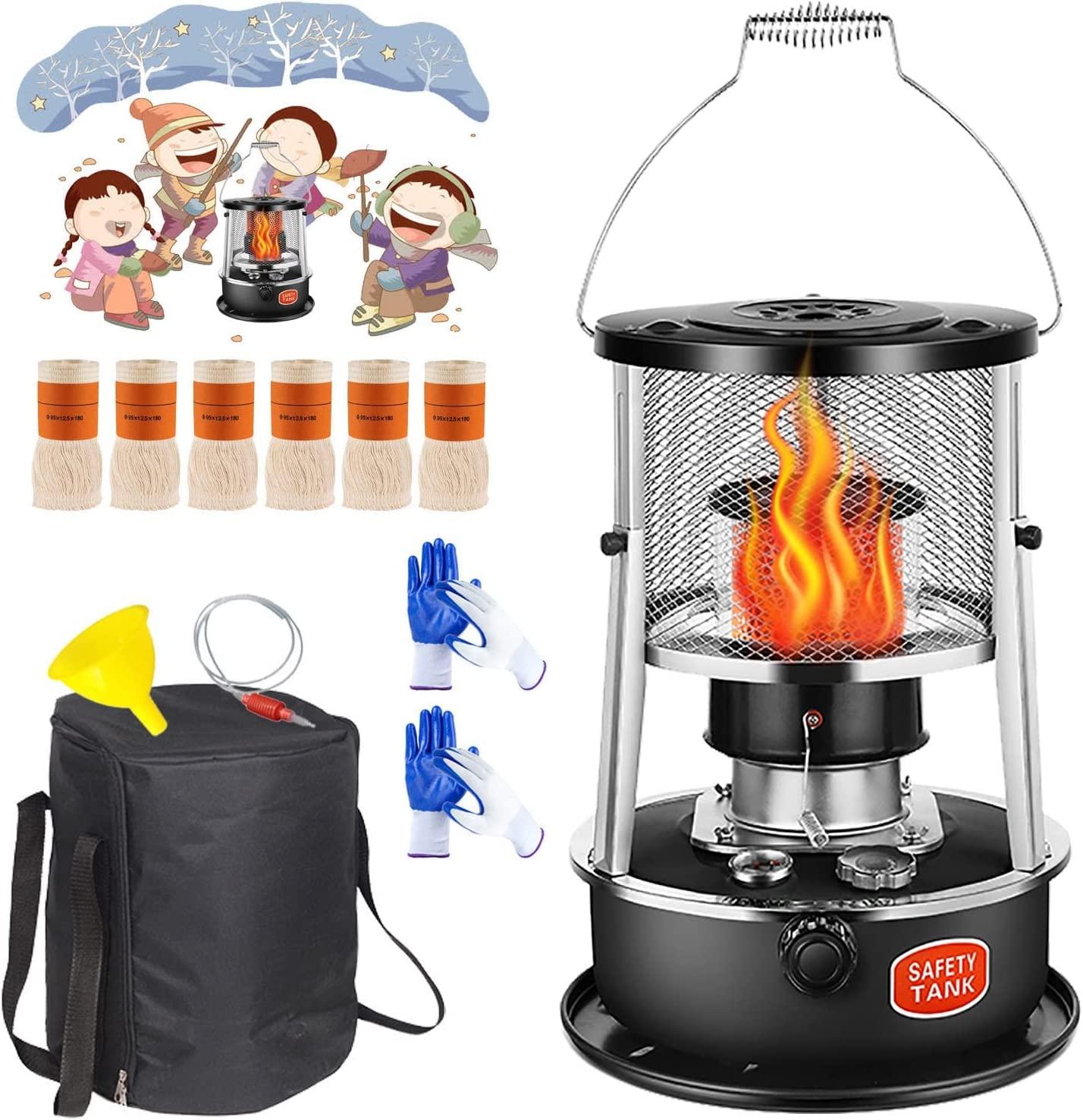 - ?High Efficiency Kerosene Heater?: The combustion chimney of the indoor portable non-electric kerosene stove is made of special metal, which ensures that the kerosene is fully burned, and the heating is faster and more efficient. Our kerosene heaters have 6 wicks. So you don’t have to worry about running out of wicks. Bring warmth and joy to you, your family and your friends anytime, anywhere.