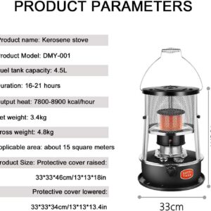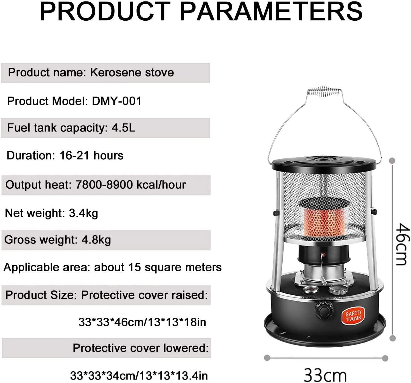 - ?Optional Fuel Tank Capacity?: Our non-electric oil stove mobile heaters come in 4.5 liters and come with storage bags and spare accessories for easy portability, making them very mobile and flexible to use. The heater is made of solid stainless steel, which is rust-proof and extremely durable.