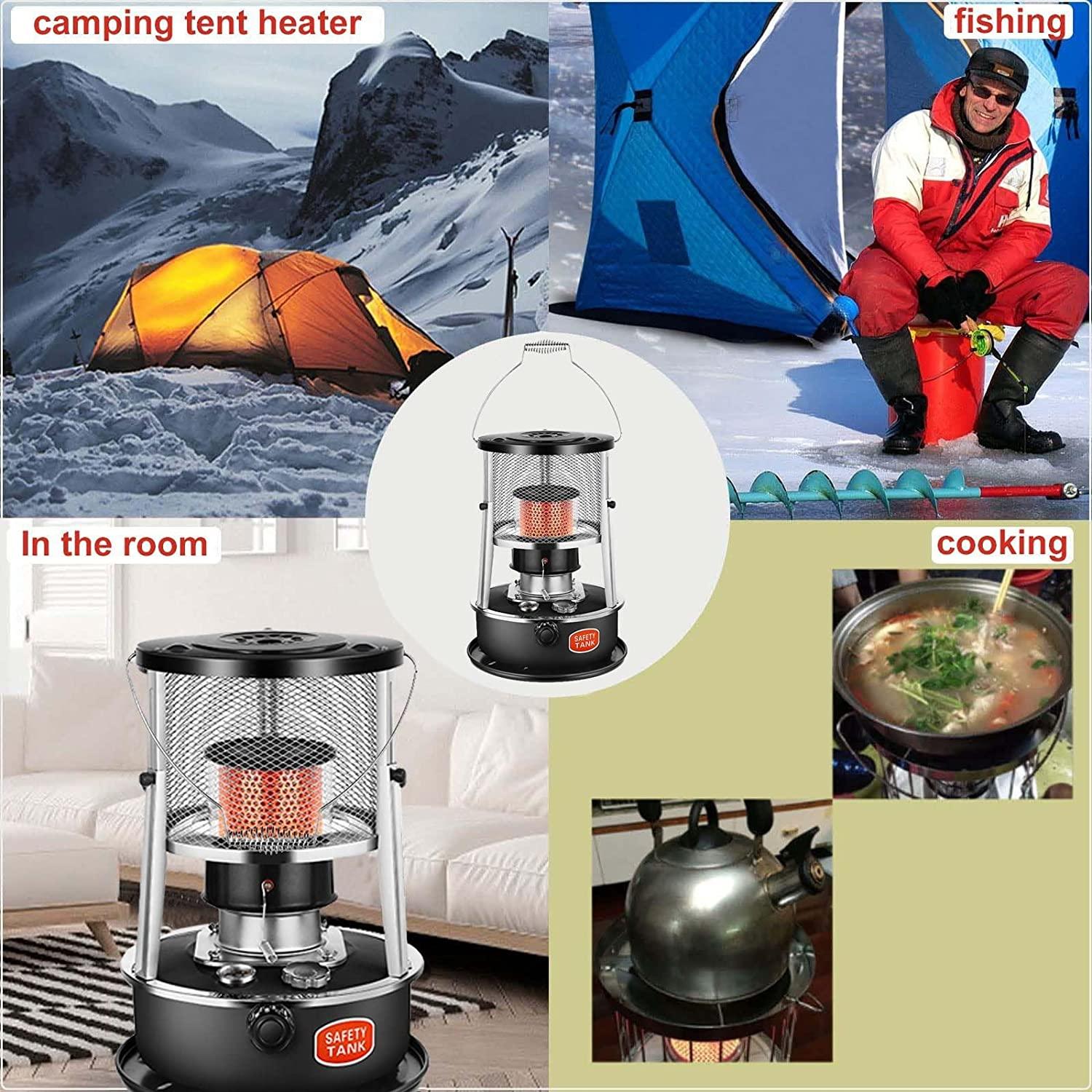 - ?Wide Uses?: Kerosene heaters can be used indoors, camping, gardens, restaurants, tents, balconies, and the portable design allows you to use them in camping, ice fishing or picnics, emergency heat sources.