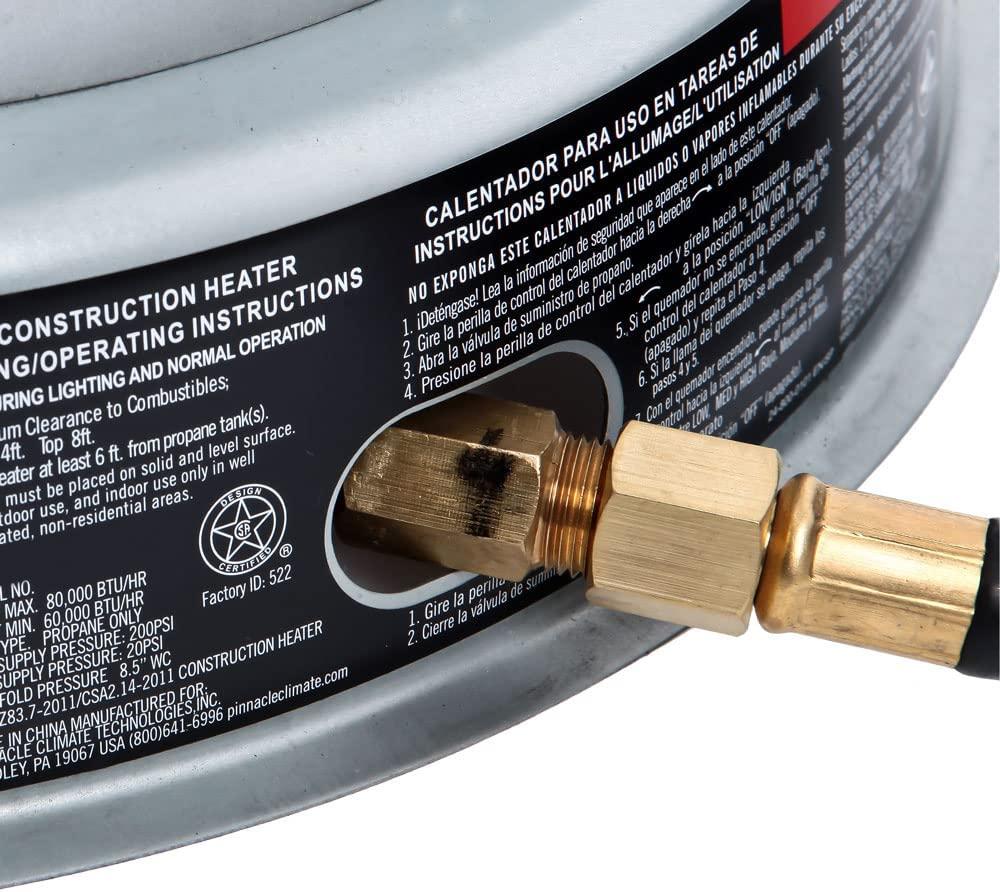 - CSA certified for use with 100 lb. propane cylinder; no electricity required