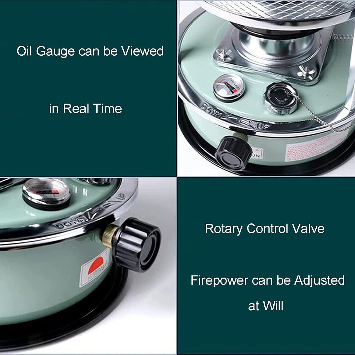 - Convenient And Practical Kerosene Stove: The top of the kerosene stove has a handle for easy carrying. The fuel gauge can be checked at any time, which is convenient for checking the fuel usage; the 4.5L fuel storage tank reduces the number of refueling, and can continue to refuel and dissipate heat for about 16-21 hours
