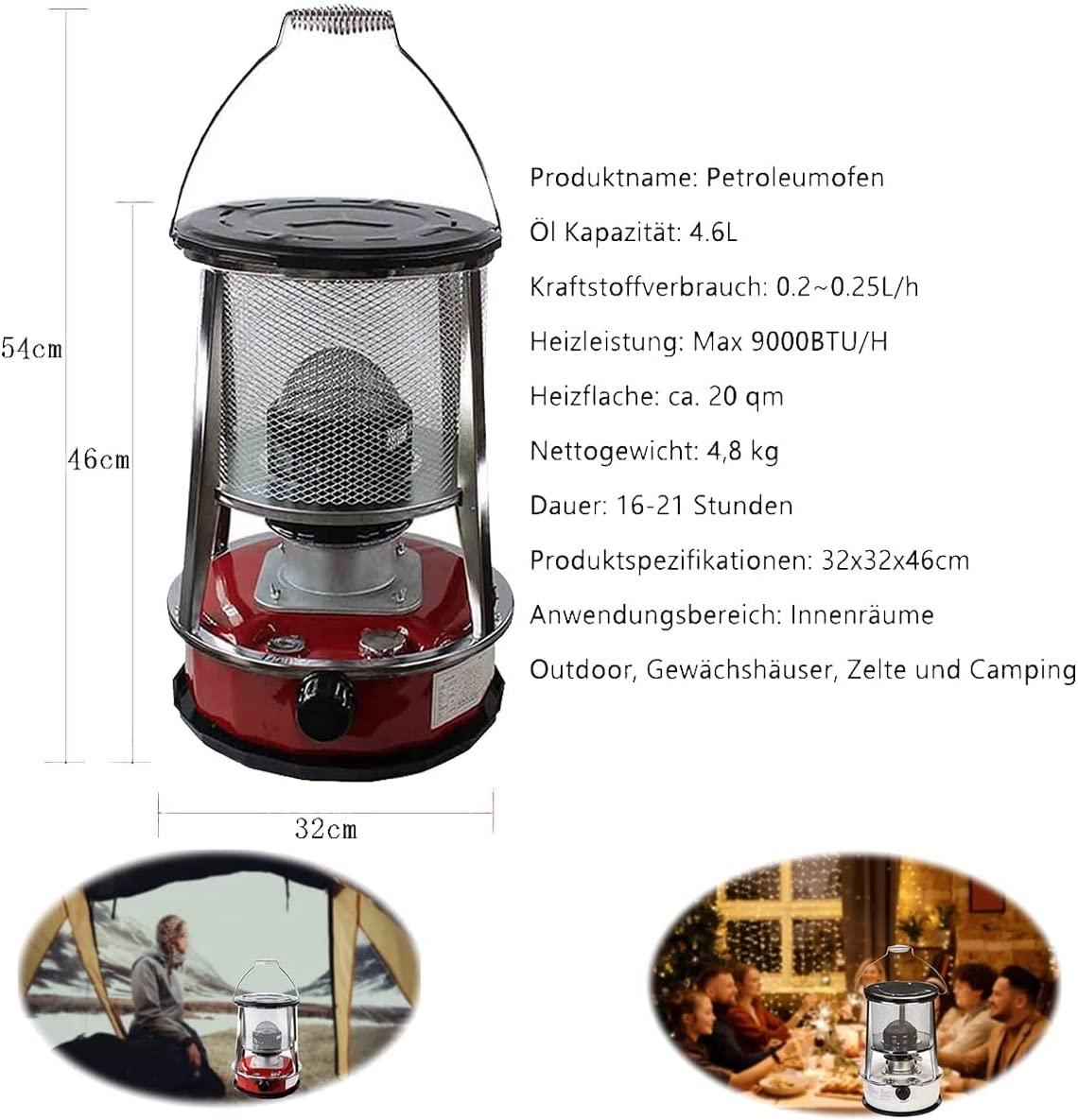 - ☩Low weight: 4.9 kg unladen weight, making it very mobile and flexible to use. Our heating stove is available in 4.6L, equipped with storage bag, spare accessories and portable handle, which is convenient to carry.