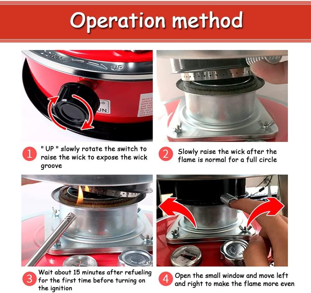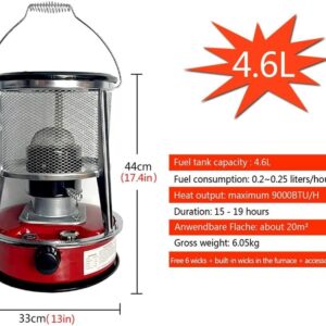 Red Efficient Kerosene Stove Burner Portable Kerosene Heaters Non Electric Multifunctional Stove Heater 4.6L for Indoor Outdoor Cooking Camping Ice Fishing Survival Emergency