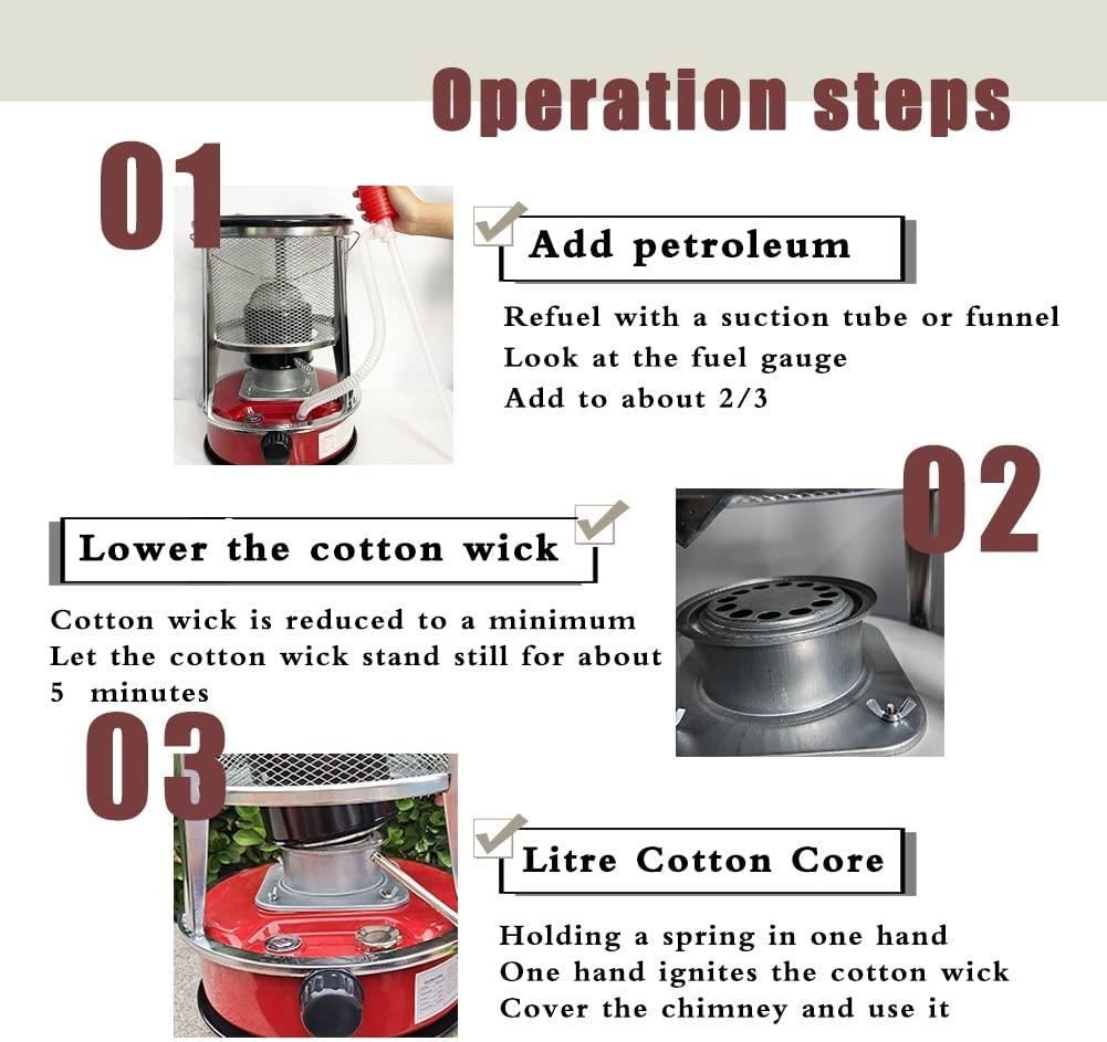 - ✔ No electric heating indoors: The combustion chimney of the portable oil stove is made of special metal, which makes the kerosene burn completely, and the heating is faster and more efficient. Bring warmth and joy to you, your family and friends anytime, anywhere.