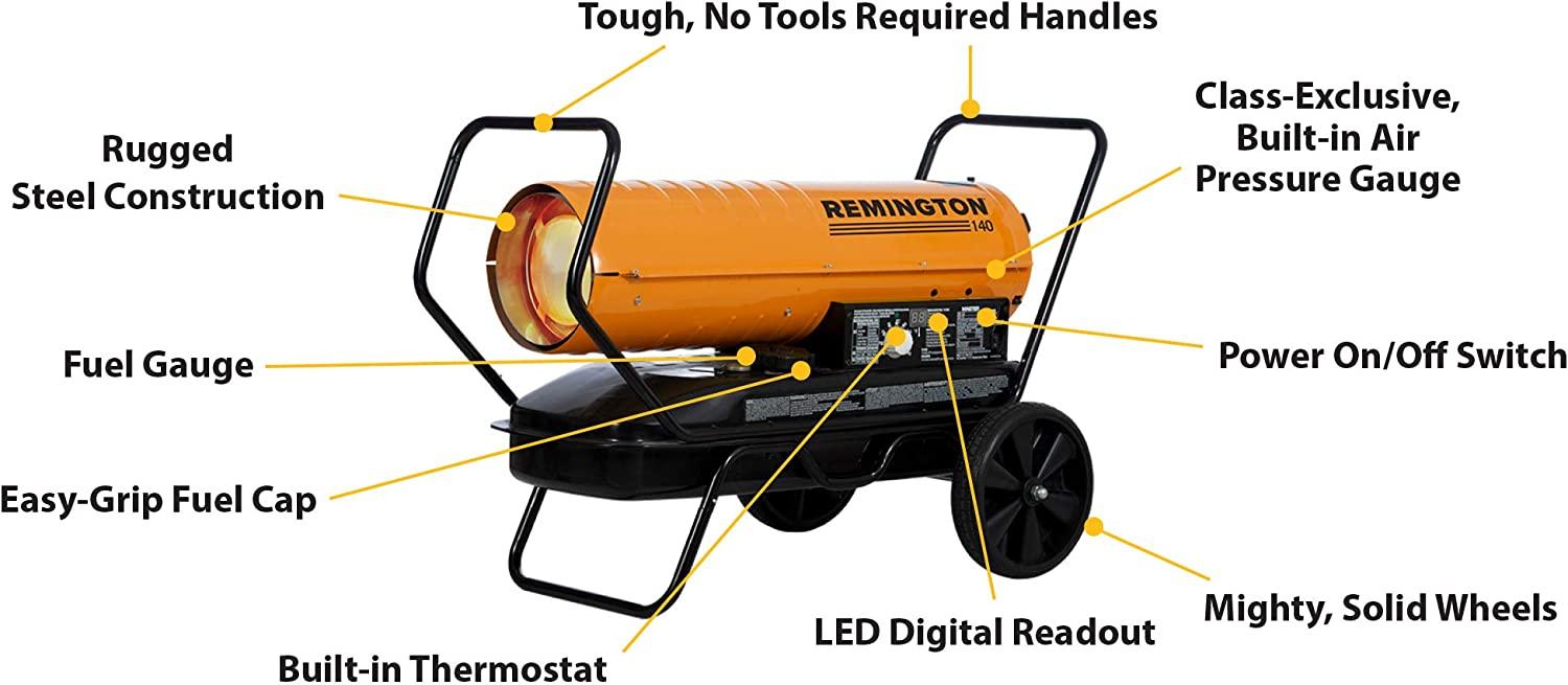 REMINGTON REM-140T-KFA-O Thermostat-controlled heating for up to 3500 square feet, 140,000 BTU, Orange/Black