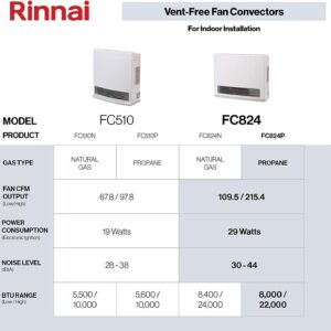 Rinnai FC824P Space Heater with Fan Convector, Propane Gas