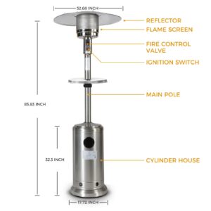 - [Easy to Assemble]The patio heater comes with a detailed owner’s manual, following the owner’s manual step by step, you can assemble it within 30 minutes.The package content includes:patio heater,mannul,wheel,hose set,black cover.