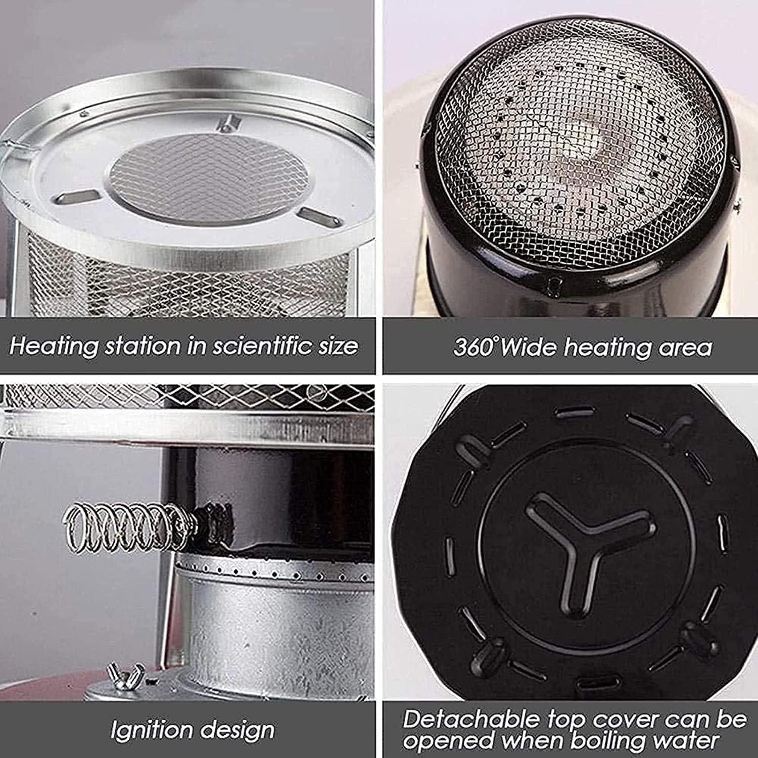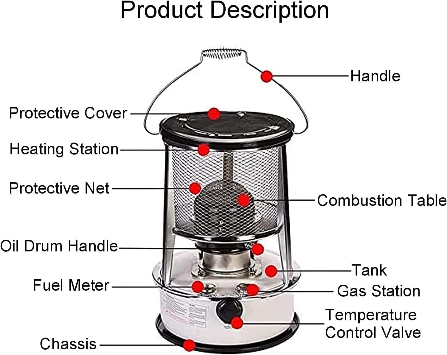 - 2, The burning chimney made of special metal makes the kerosene fully burned, heating faster and more efficient.