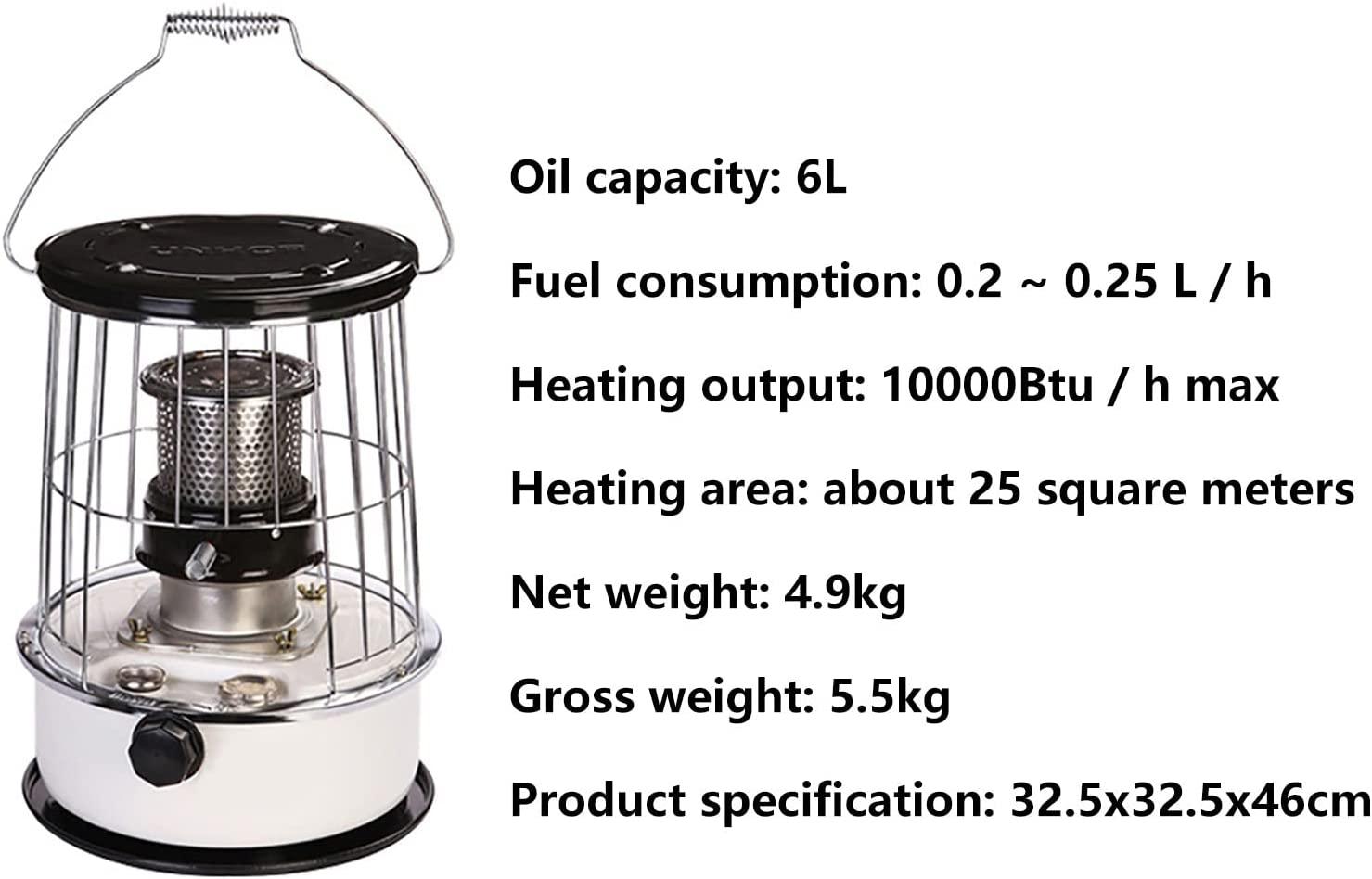 Sikye Kerosene Stove Space Heater 10000BTU/ 3000W Portable Kerosene Stove Space Heater Burner Lightweight Space Heater Sets for Indoor Outdoor Patio Deck Home (6L), White, (Sikye-001)
