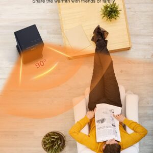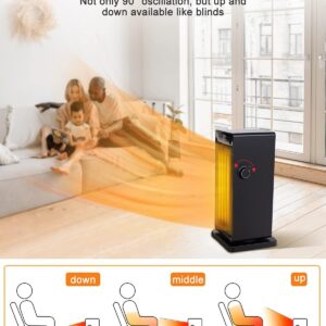 - 【90° Oscillation & Blinds design】Our space heater comes in a compact size that makes it ideal for both bedrooms and offices. With 90° wide oscillation, this ceramic tower heater could warm a wider area than other ones. Morever, the blinds design of the air outlet makes warm air up/down adjustable, downward blades for targeted heating while upward blades for spreading the warm air to a far area.