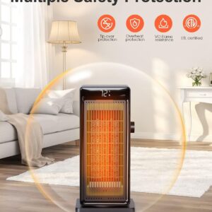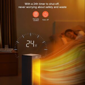 - 【24-hours Timer & Remote control】This oscillating space heater features a 0-24 hours timer to turn off automatically, ensuring safety and helping you save money on your electric bill. The top touch button and a LED screen for easy control, also, you could access all settings with the handy remote control, no more getting up frequently to adjust it on such cold nights.