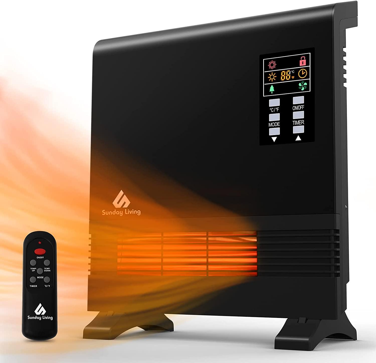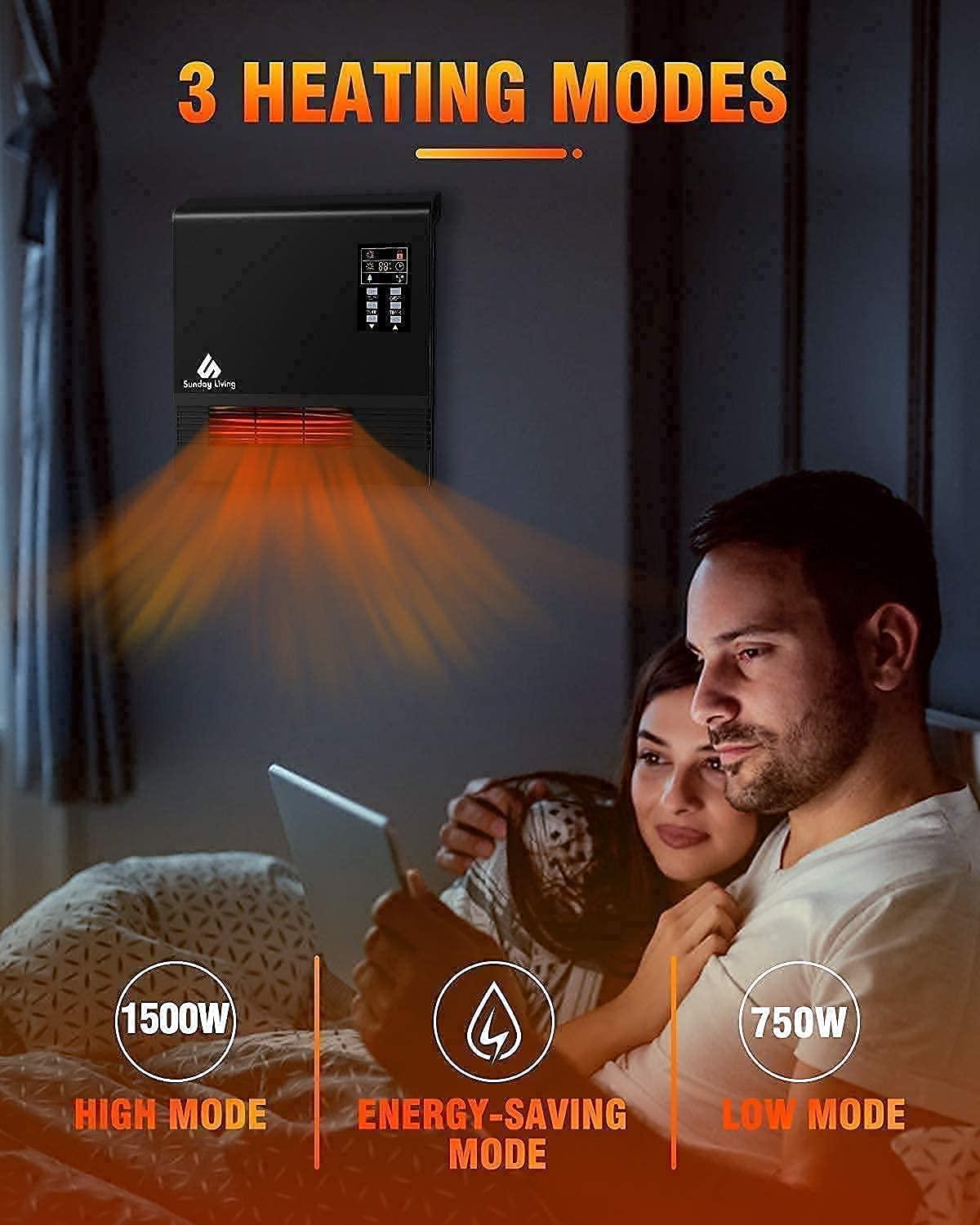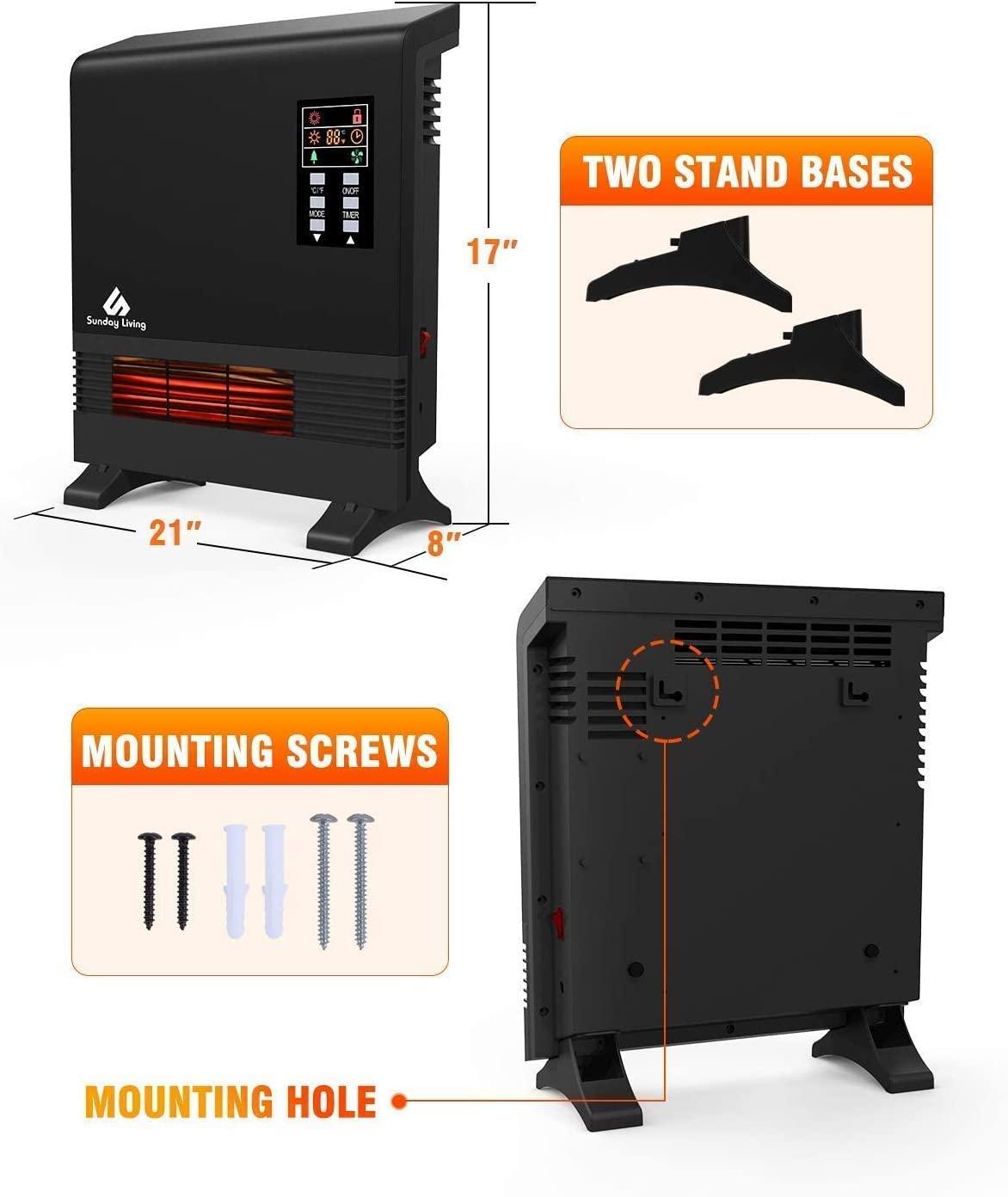 Sunday Living Electric Space Heater, 1500W Infrared Space Heater, Wall Mount or standing, Adjustable Thermostat, Remote Control, 12-H Timer, Wall Heater for Large Room, Bathroom, Garage, Bedroom