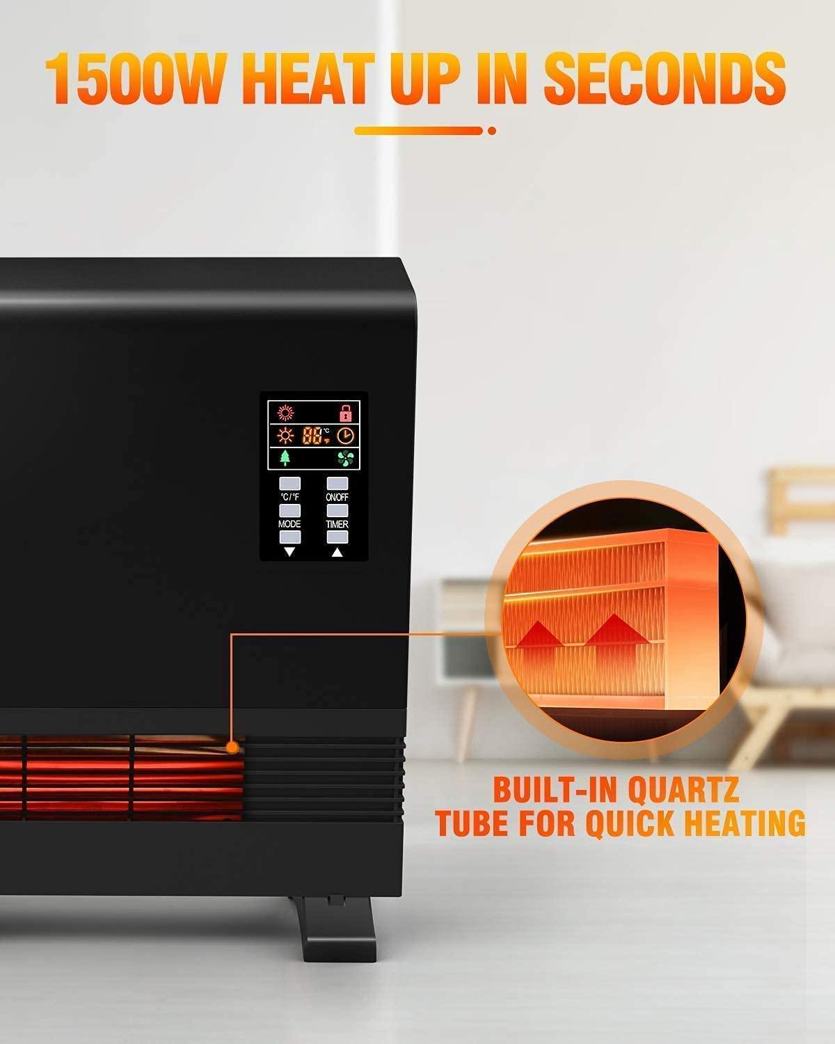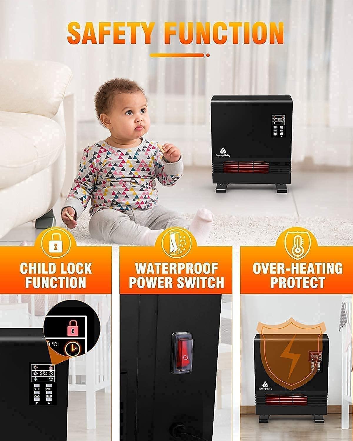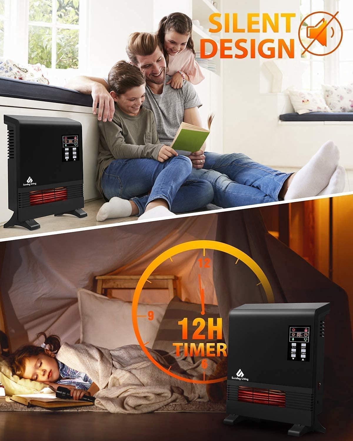 Sunday Living Electric Space Heater, 1500W Infrared Space Heater, Wall Mount or standing, Adjustable Thermostat, Remote Control, 12-H Timer, Wall Heater for Large Room, Bathroom, Garage, Bedroom