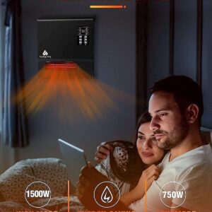 - 【3 MODES AND TIMER】: High heat for 1500W, low heat for 750W, and ECO for energy saving. Adjustable thermostat for setting temperature from 59°F to 86°F. This indoor heater comes with power-off timer(1-12 hours), set your desire time and temp, enjoy your and warm personal time.The °C/°F button to switch the display between Fahrenheit and Celsius.